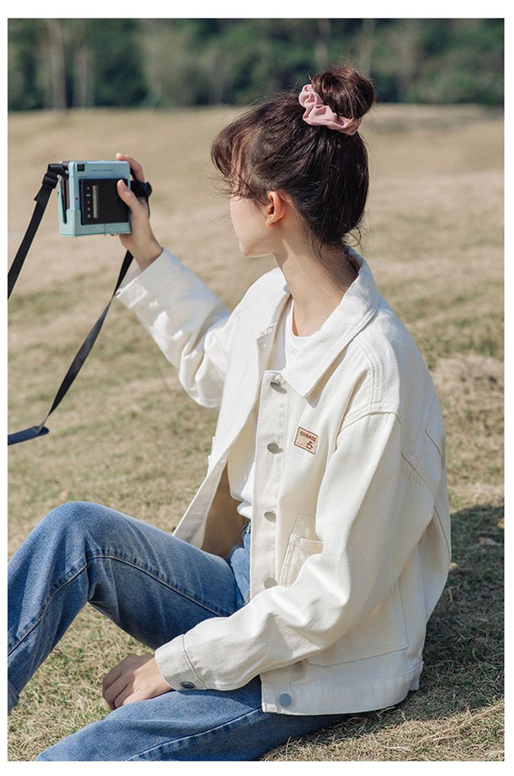 2025 레트로 학생 새로운 홍콩 스타일 긴팔 화이트 데님 재킷 작업 재킷 탑 봄, 가을 여성용 다용도스토어 가기