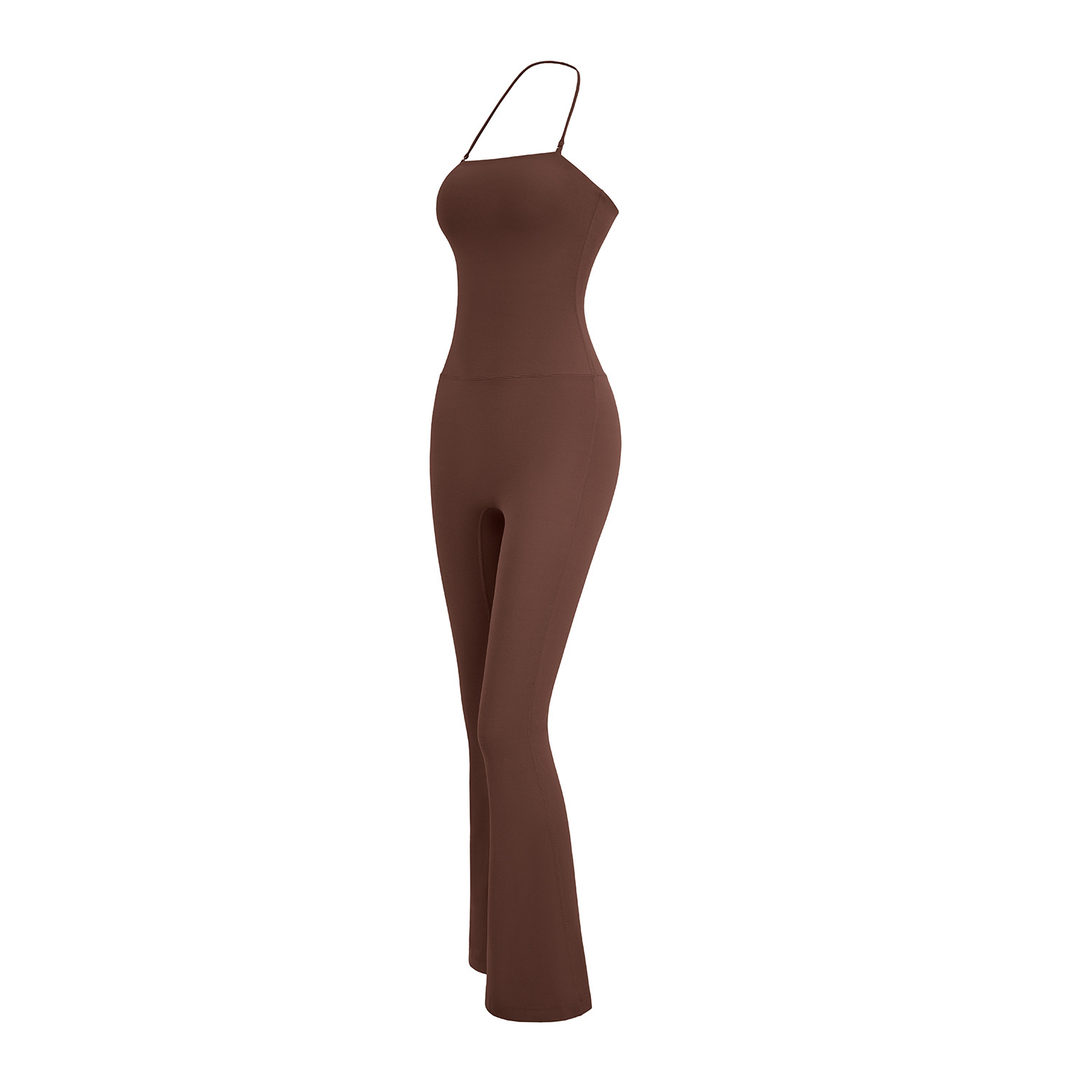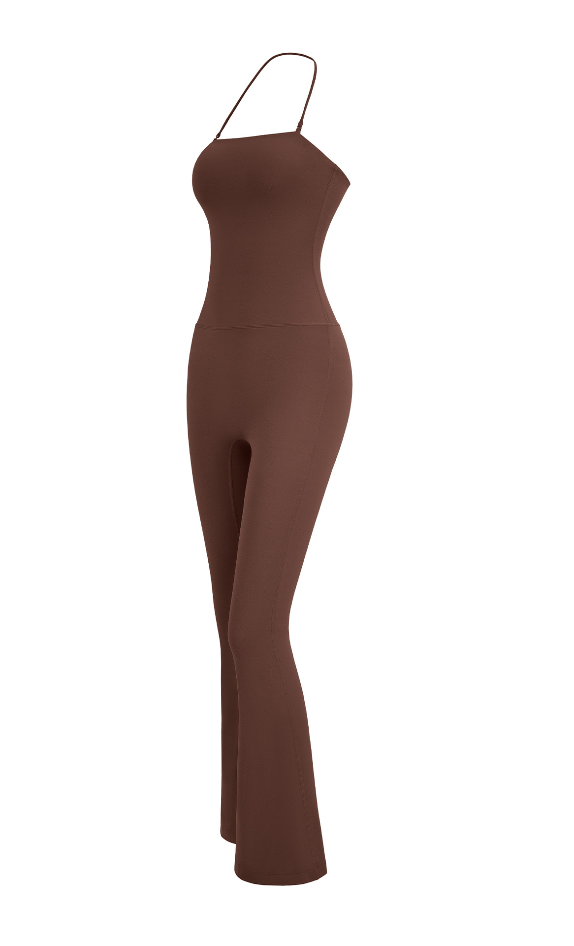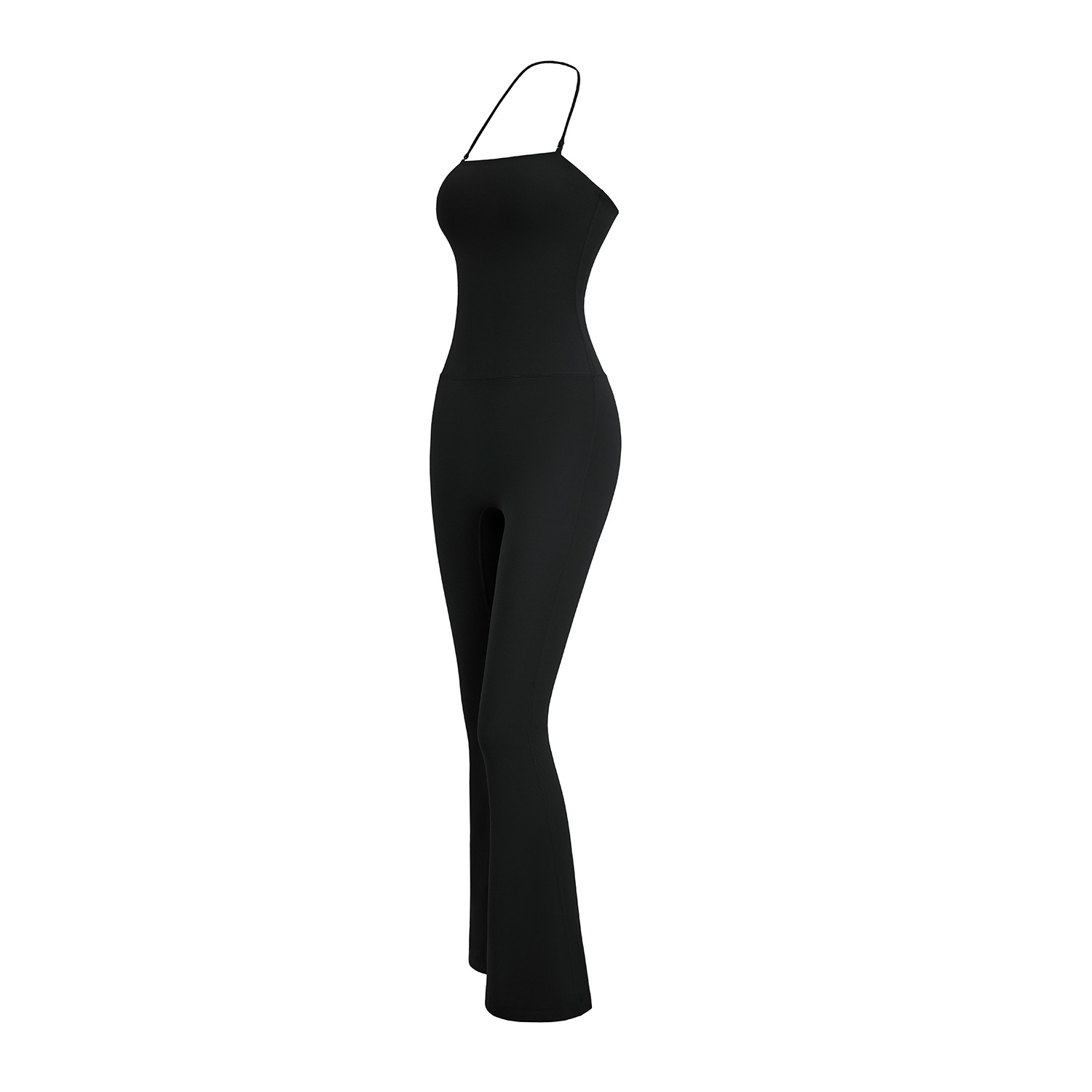 Tongji 원피스 요가복, 항균 누드 슬링, 홀터넥, 마이크로 플레어 타이트 점프수트, 스포츠 필라테스 피트니스웨어