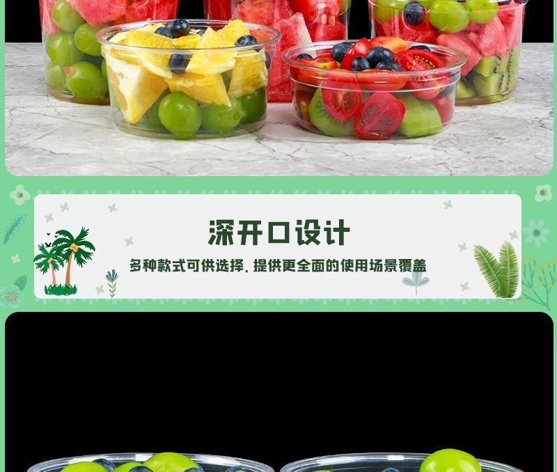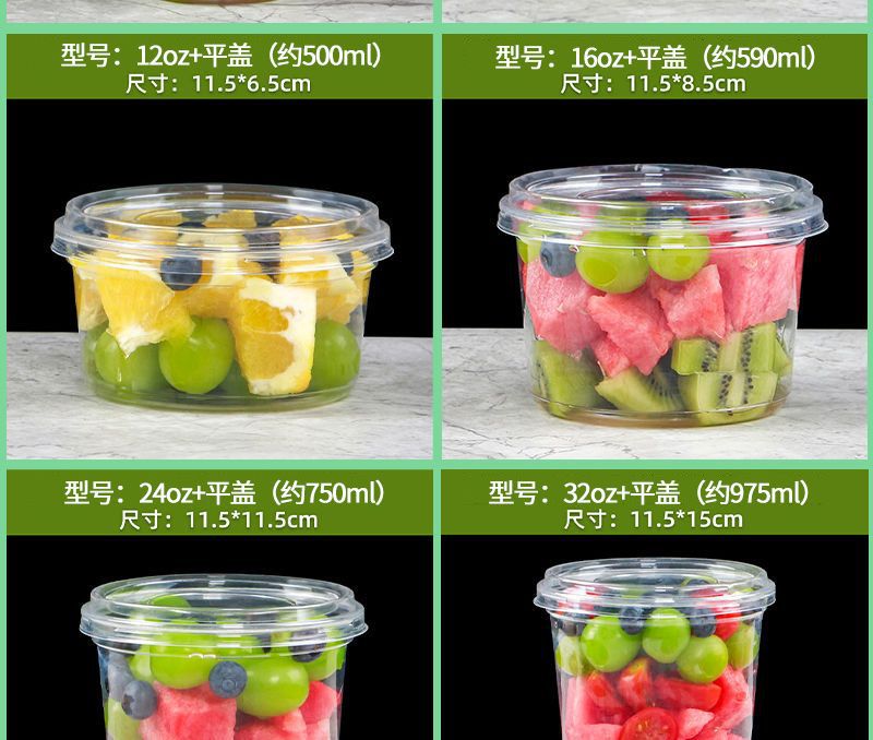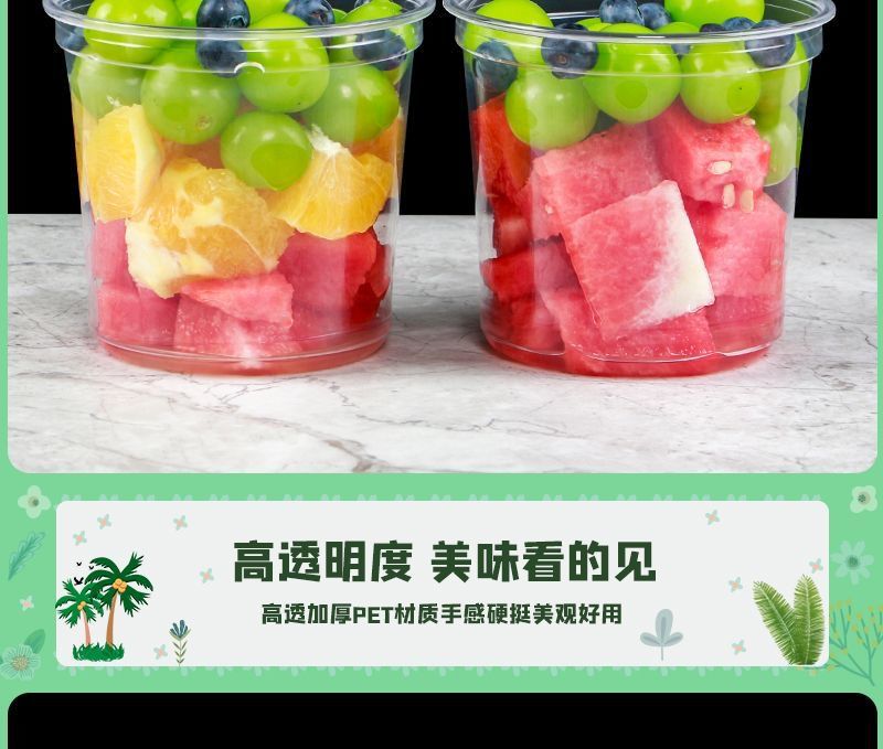 새로운 인터넷 연예인 인기 일회용 과일 컷 포장 상자 두꺼운 투명 플라스틱 컵 샐러드 과일 컵 포장 상자