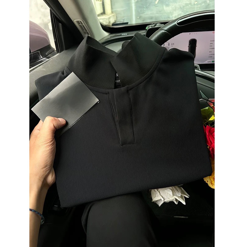 [Douyin 핫 스타일] 아메리칸 갈매기 칼라 폴로 셔츠 반팔 남성 통근 비즈니스 니트 스트레치 티셔츠 탑