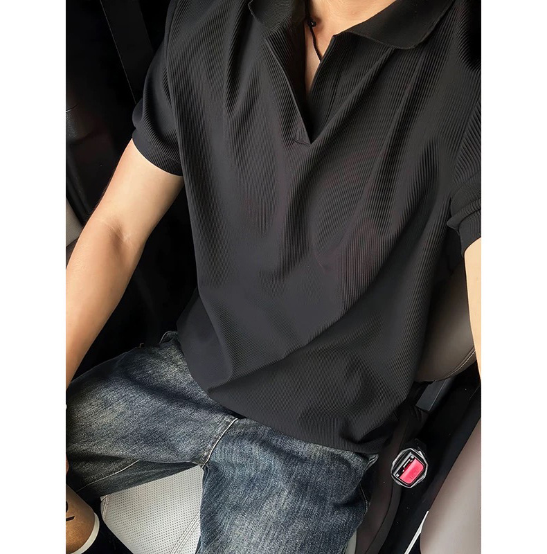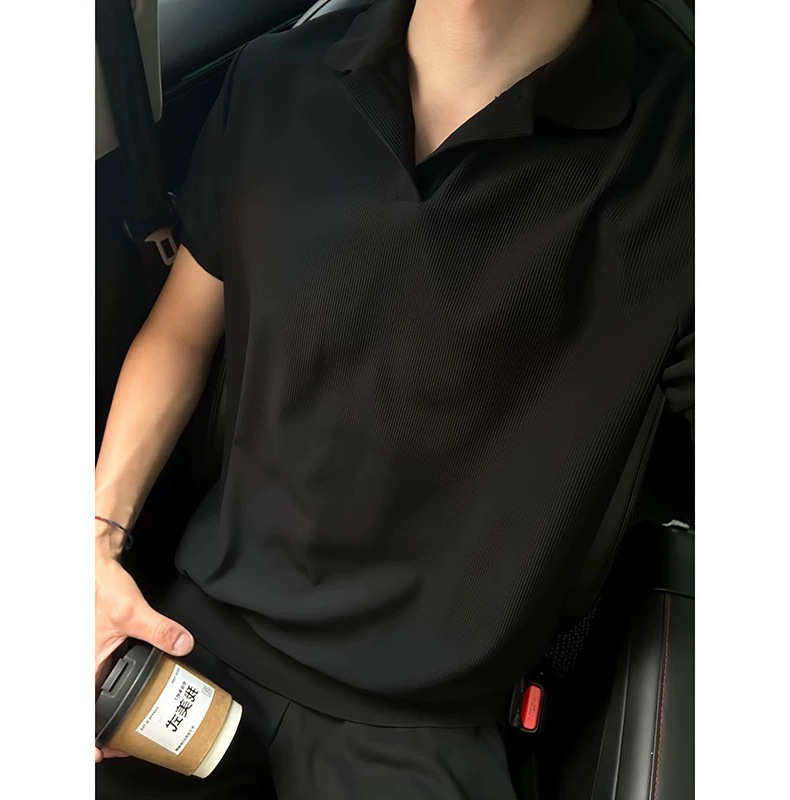 [Douyin 핫 스타일] 아메리칸 갈매기 칼라 폴로 셔츠 반팔 남성 통근 비즈니스 니트 스트레치 티셔츠 탑스토어 가기