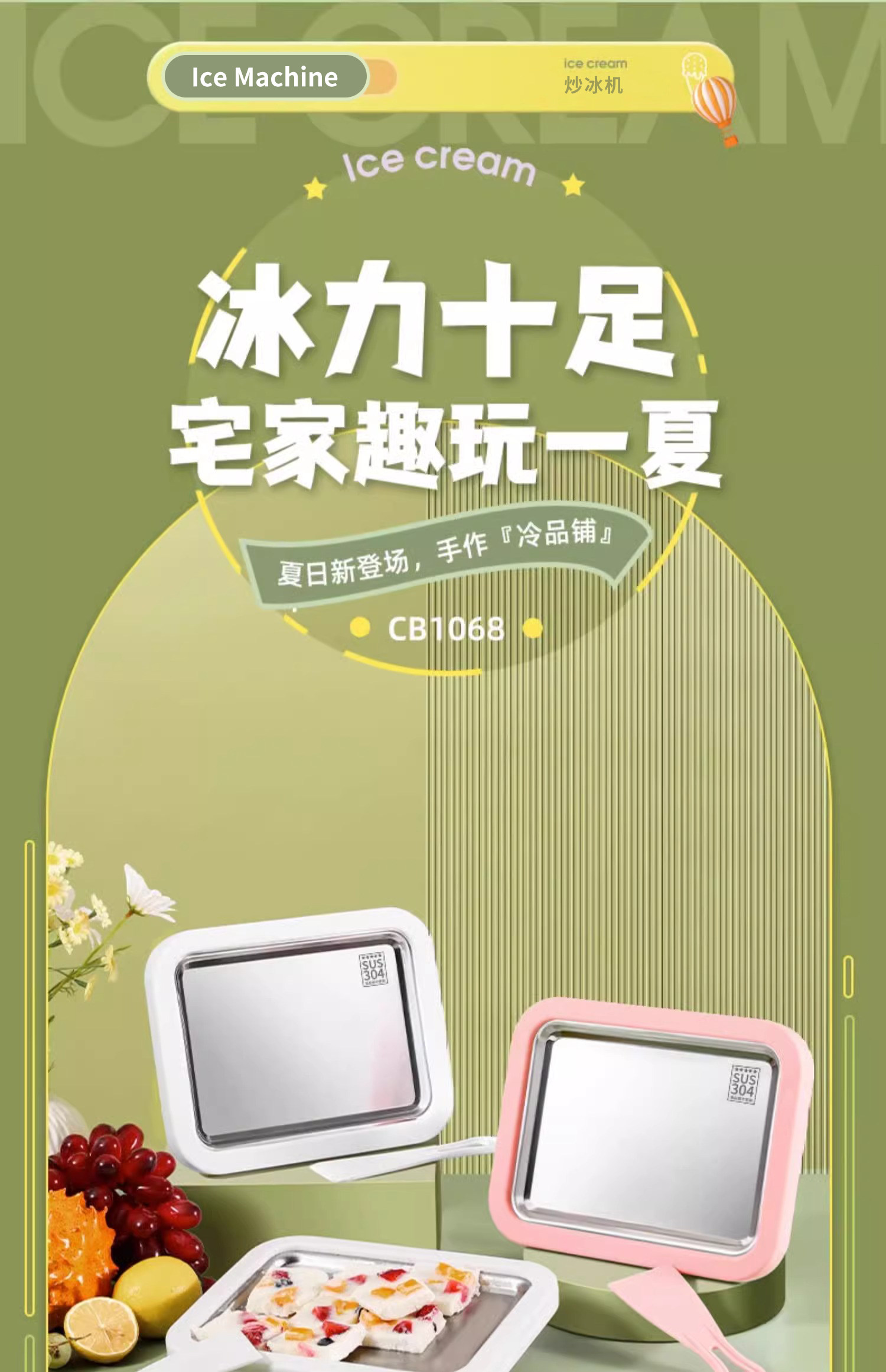 아이스크림 튀김기, 집에서 만드는 과일 플러그인 없는 아이스크림 튀김 요구르트 기계, 소형 가정용 어린이 미니 아이스크림스토어 가기
