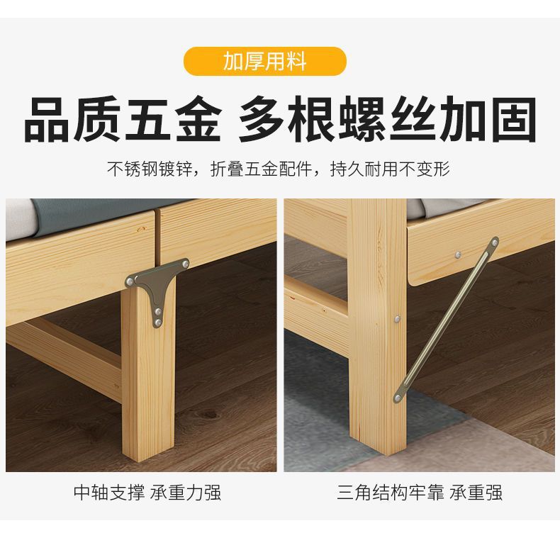 가정용 싱글용 원목 접이식 침대, 원목 어린이용 유아용 침대, 튼튼하고 내구성이 뛰어난 원목 침대, 간이 낮잠 침대