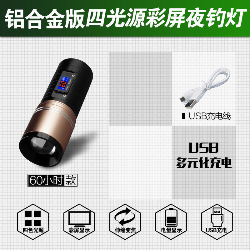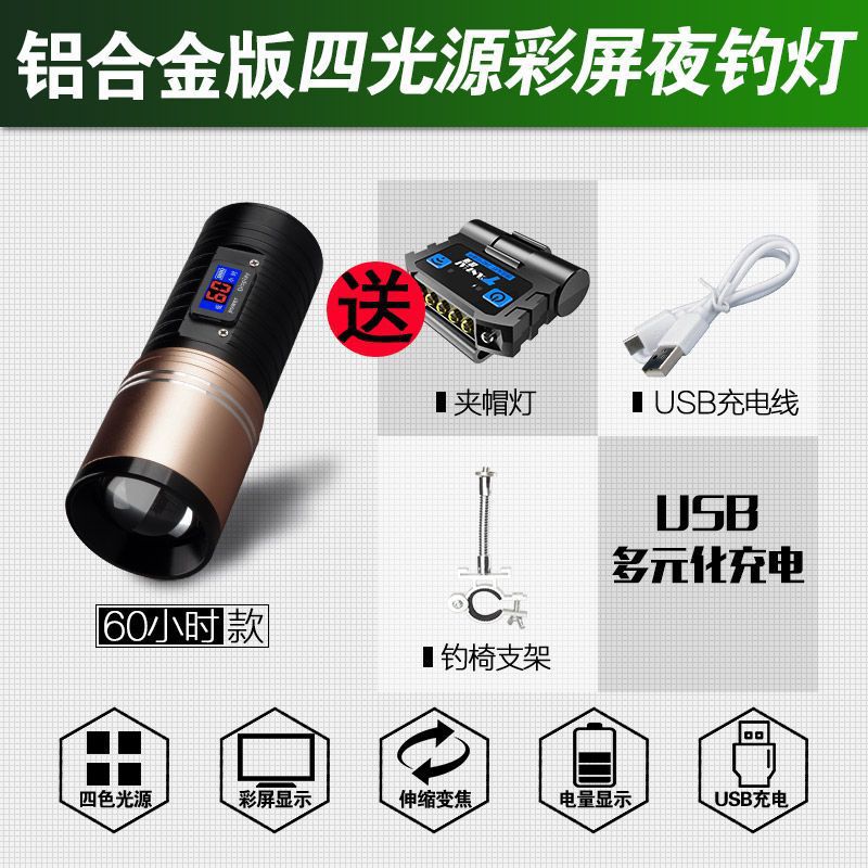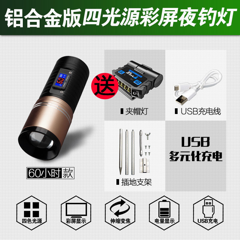 • ·컬러 스크린 4등 100S [알루미늄 합금 + 휴대폰 충전 - 야간 낚시등 + 라인 + 유도 클립 모자 램프 + 낚시 의자 브래킷