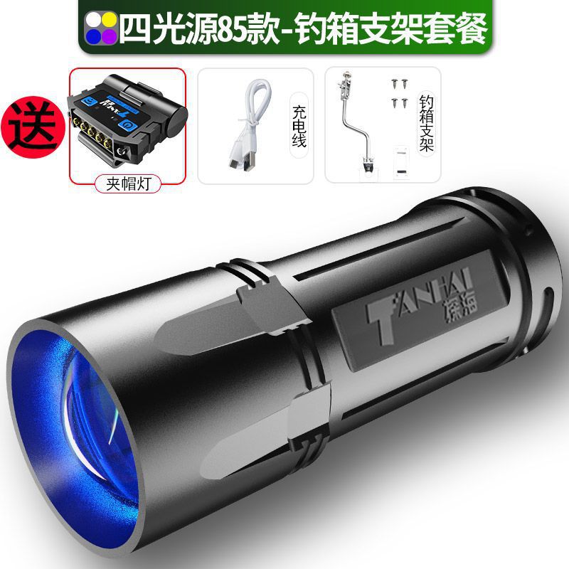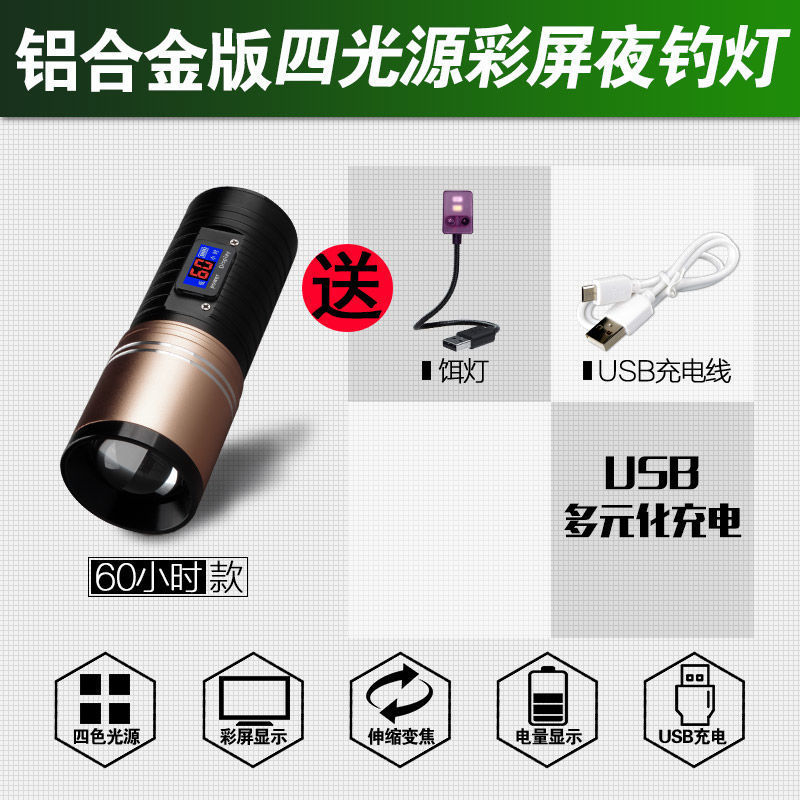 • ·컬러 스크린 4등 100S [알루미늄 합금 + 휴대폰 충전 - 야간 낚시등 + 전선 + 유도 클립 모자 램프 + 낚시 상자 브래킷
