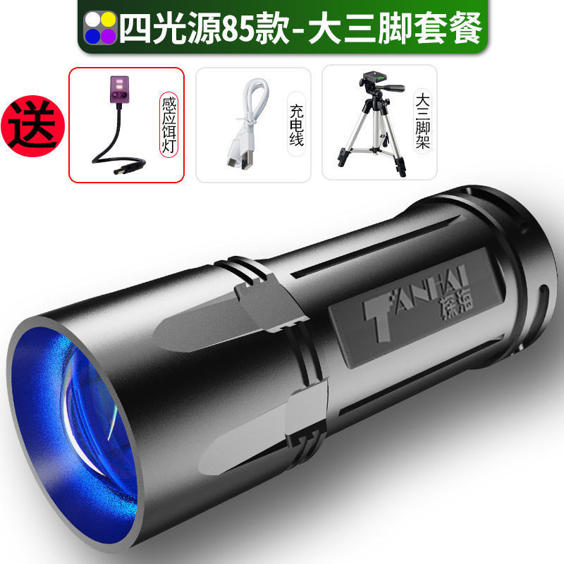 • 85시간 사용 가능 - 4가지 광원 [백색, 청색, 황색, 자색광] - 야간 낚시등 + 충전 케이블