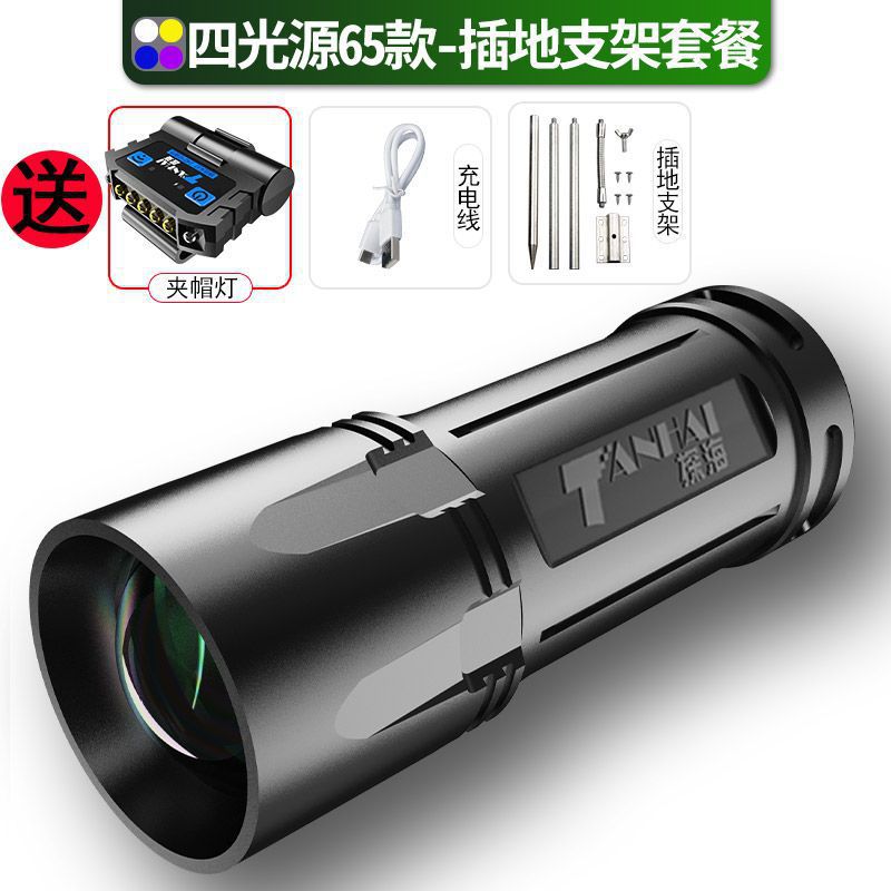 • ·65시간 - 4가지 광원 [백색, 청색, 황색, 보라색 빛] - 야간 낚시등 + 라인 + 유도 클립 모자 램프 + 접지 브래킷