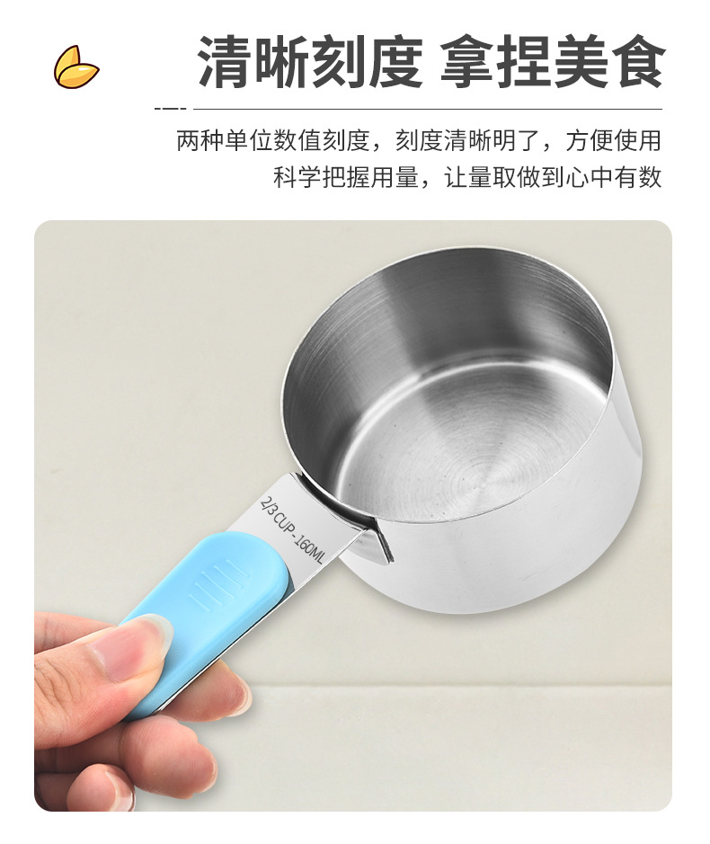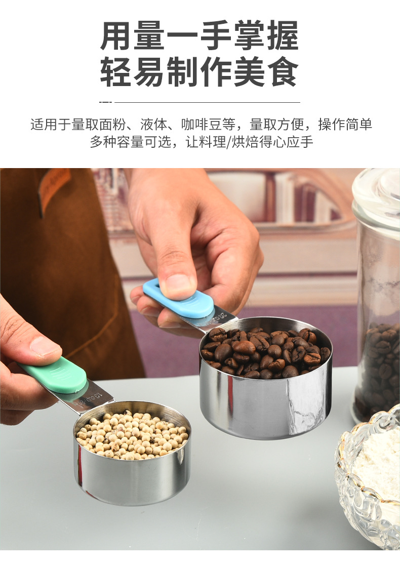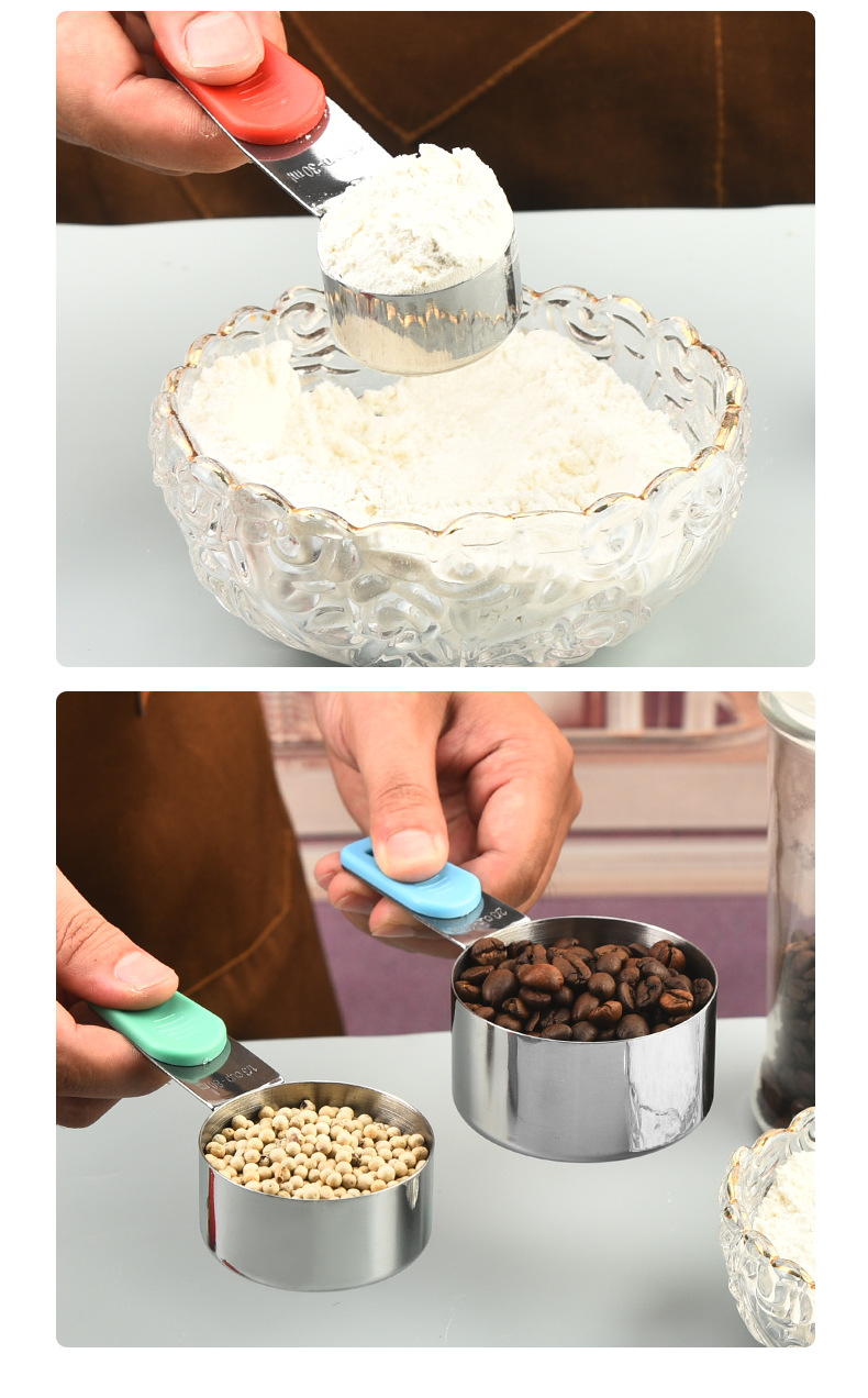 새로운 스테인레스 스틸 측정 컵 측정 숟가락 마그네틱 핸들 베이킹 측정 컵 스케일 측정 컵 측정 베이킹 도구 도매