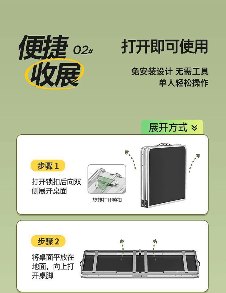 • ✞ [업그레이드 된 알루미늄 합금 사각 튜브] 120*60cm 녹색 + 알루미늄 의자 2개 ♢ ✦