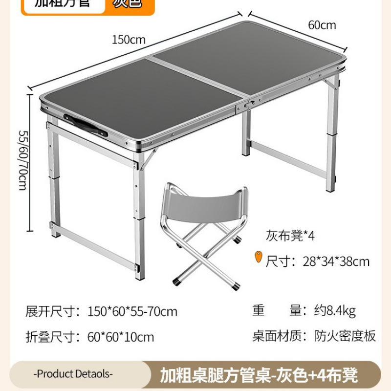 • ✞ [업그레이드 된 알루미늄 합금 사각 튜브] 150*60cm 회색 + 천 의자 4개 ♢ ✦