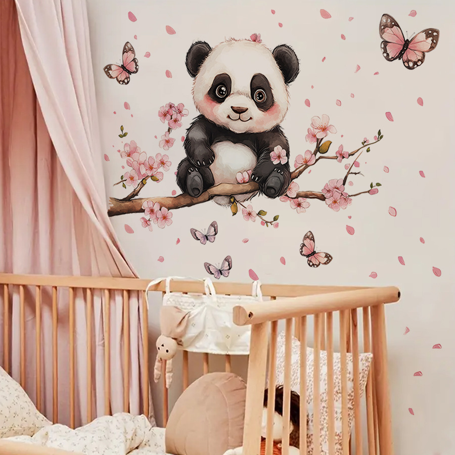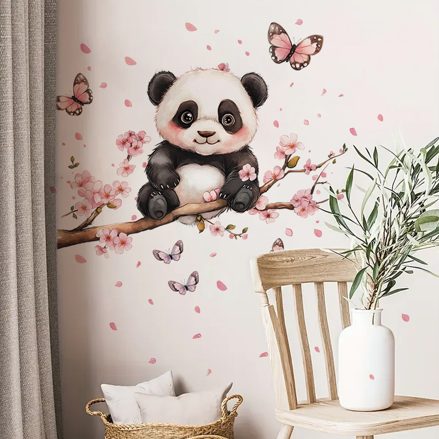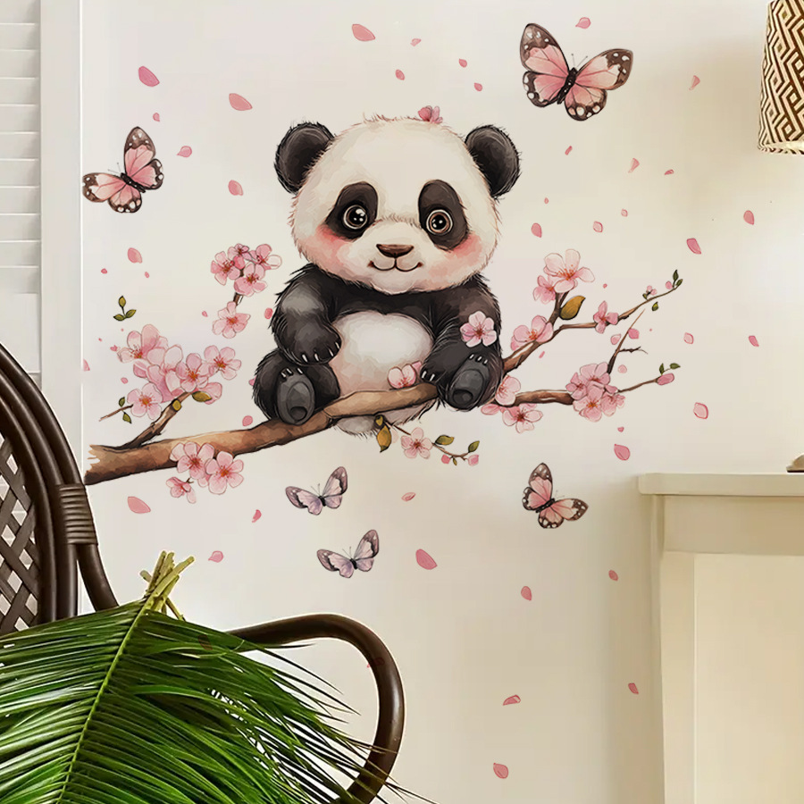 HS1378E 귀여운 만화 레드 팬더 나비 벚꽃 따뜻한 자체 접착 침실 거실 미화 장식 벽 스티커스토어 가기