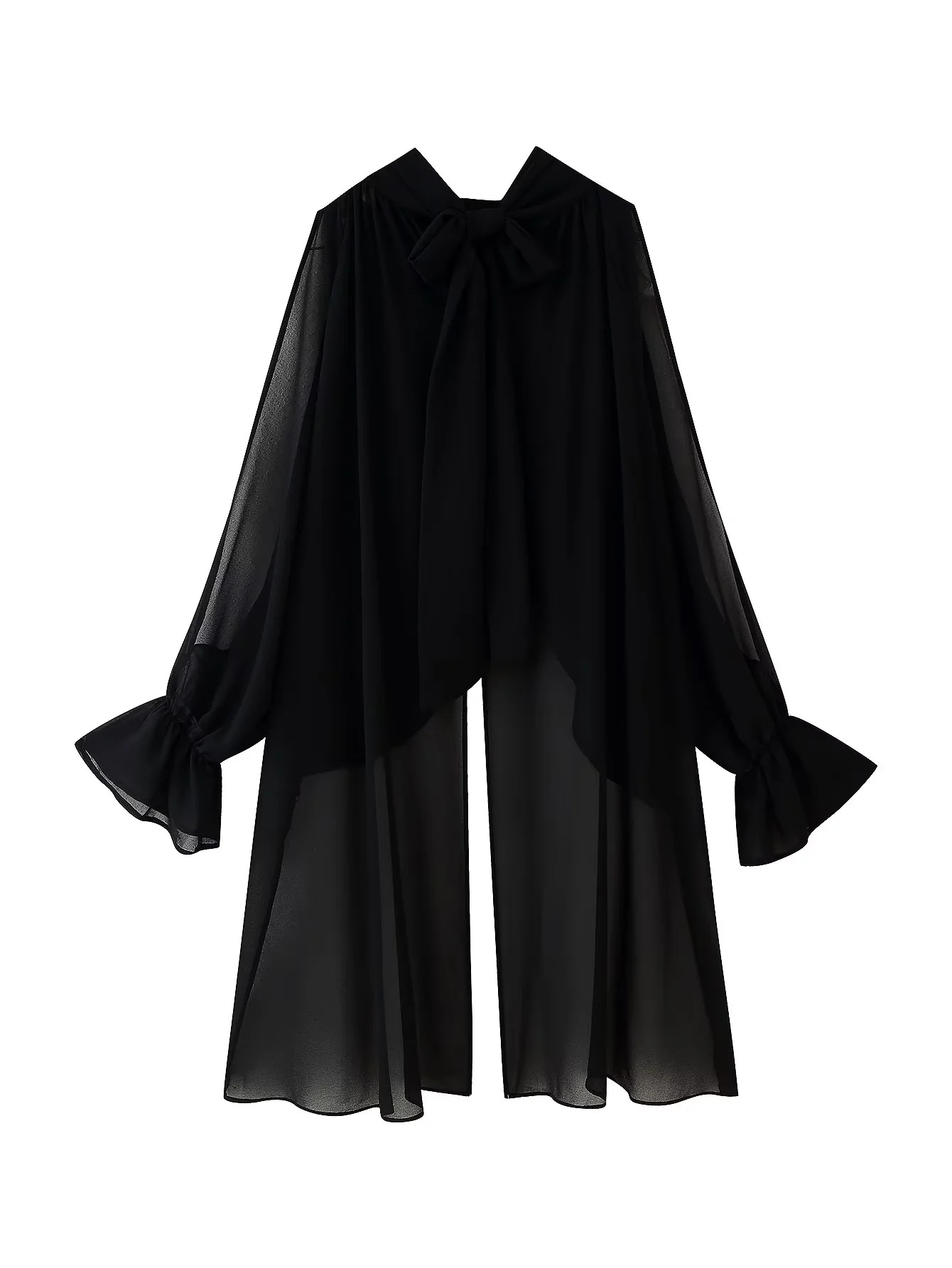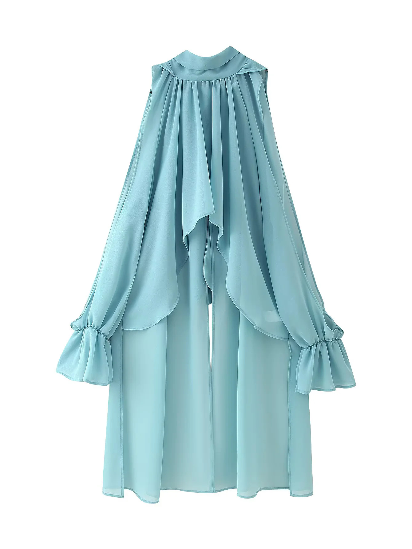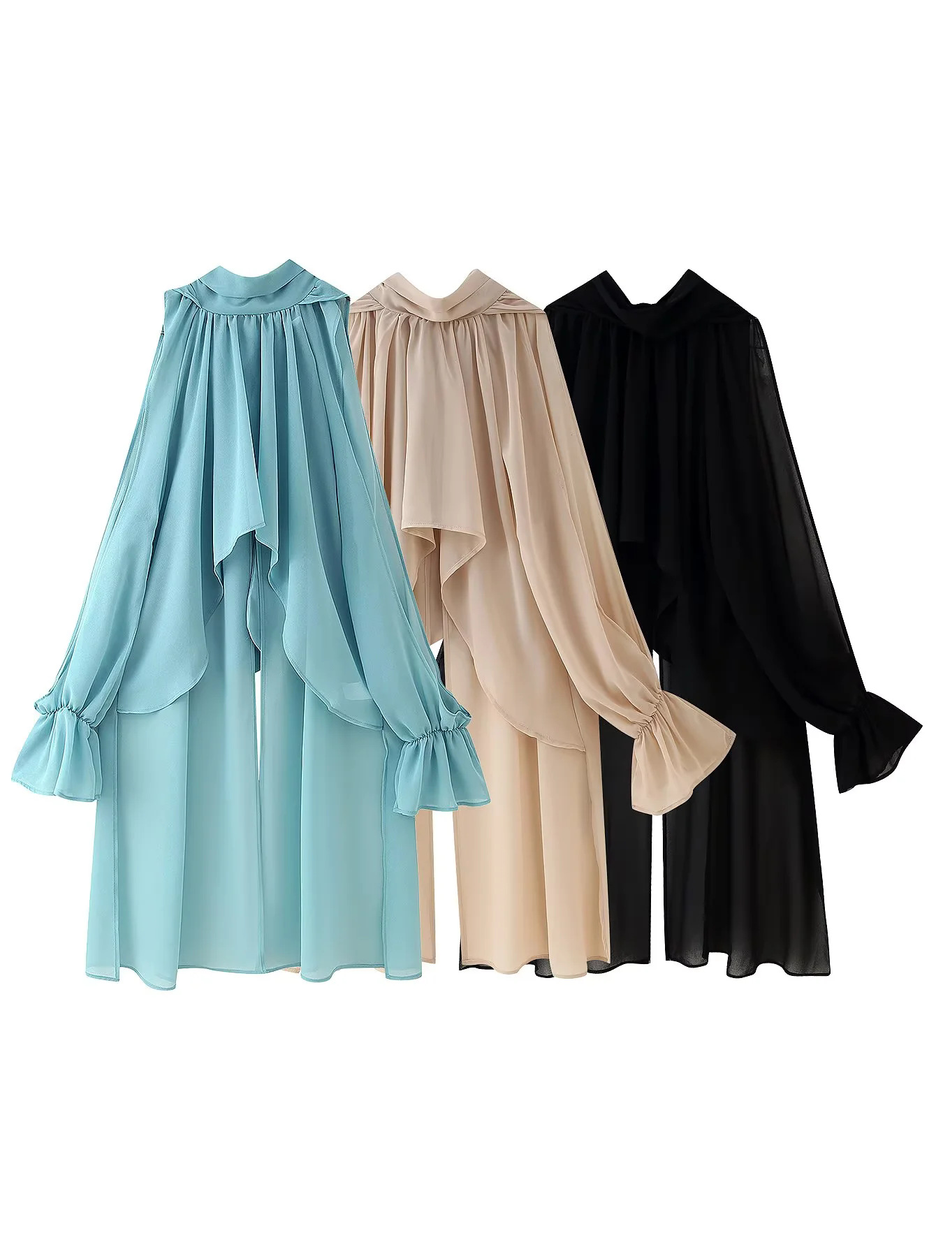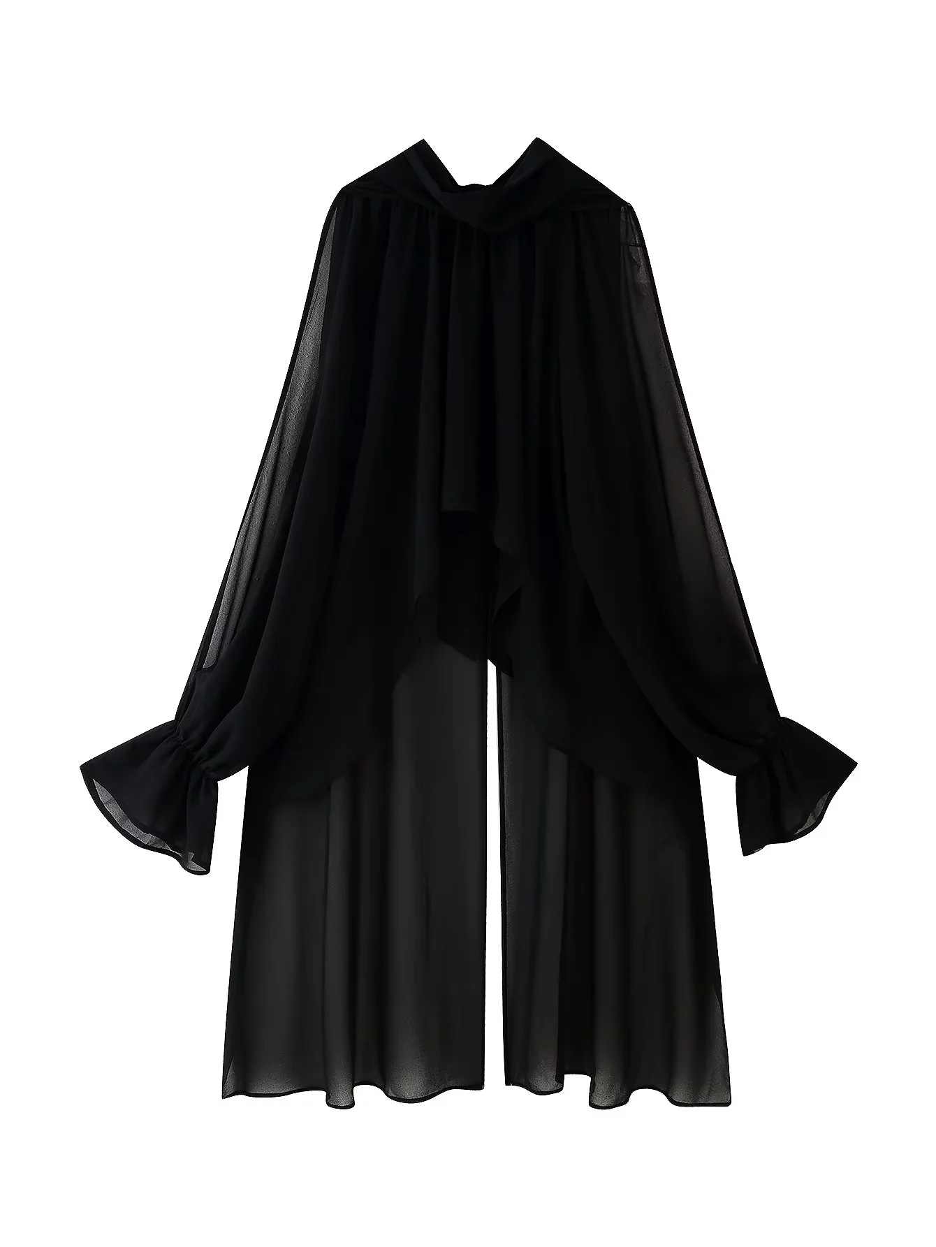 AliExpress 국경 간 2025 여름 새로운 스타일 여성 유럽과 미국 스타일의 중간 길이 숄 캐주얼 카디건 쉬폰 탑