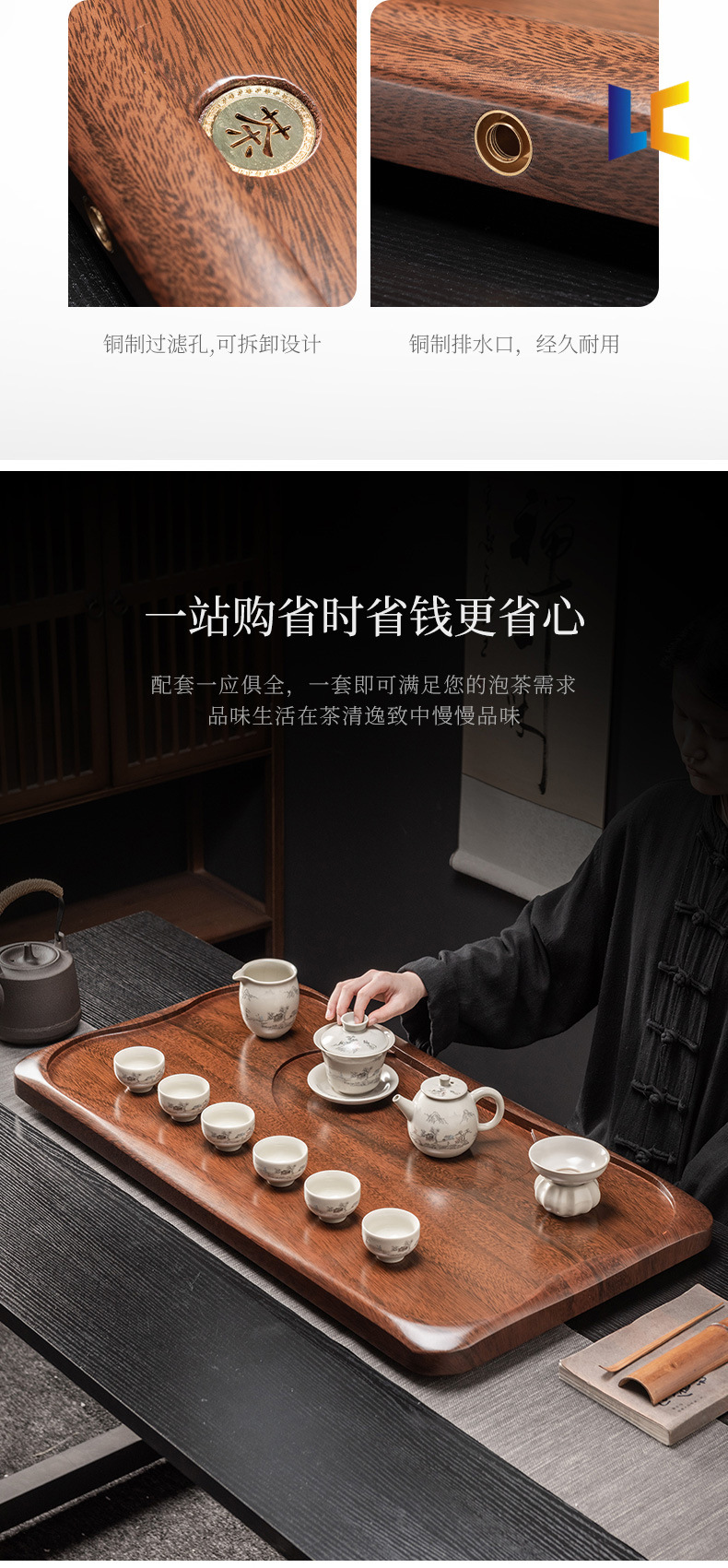 차 세트 차 트레이 2025 새로운 가정용 호두 색상 단단한 나무 차 테이블 배수형 라이트 럭셔리 현대 올인원 트레이스토어 가기