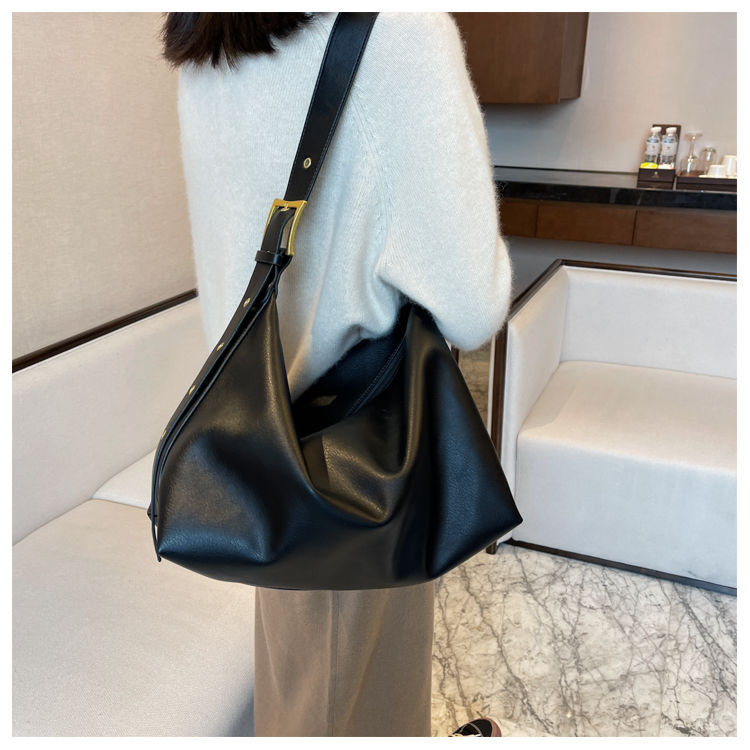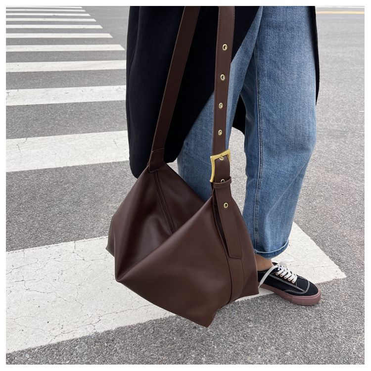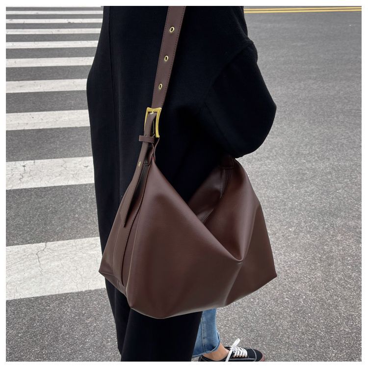 Jian Neng 가방 여성 틈새 복고풍 질감 크로스 바디 백 와이드 숄더 스트랩 대용량 솔리드 컬러 패션 캐주얼 소프트 접이식 숄더스토어 가기
