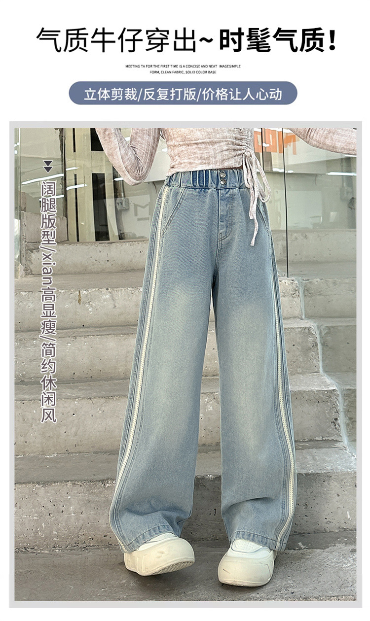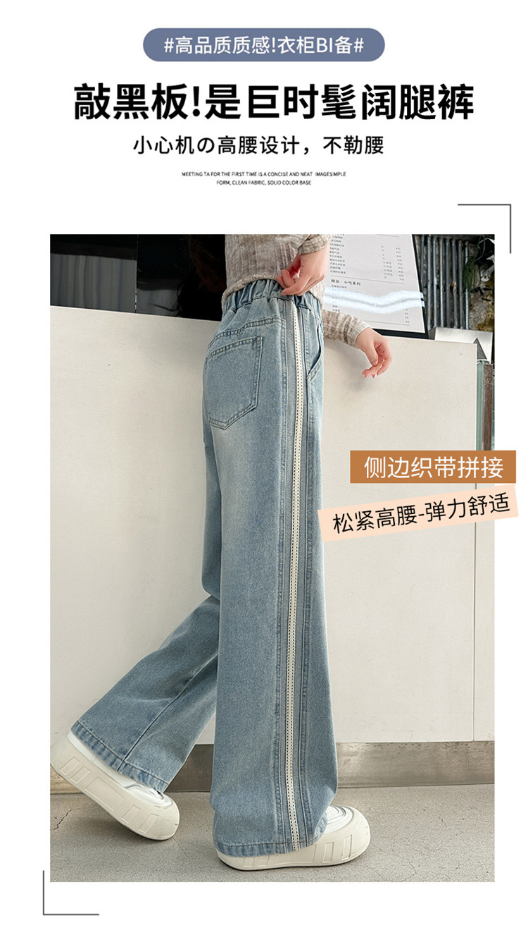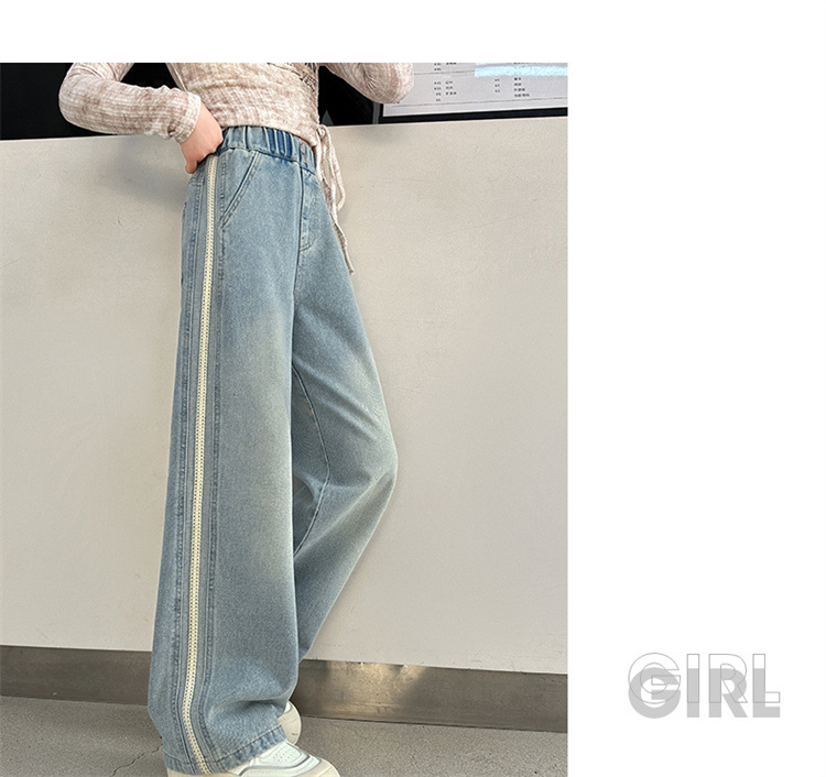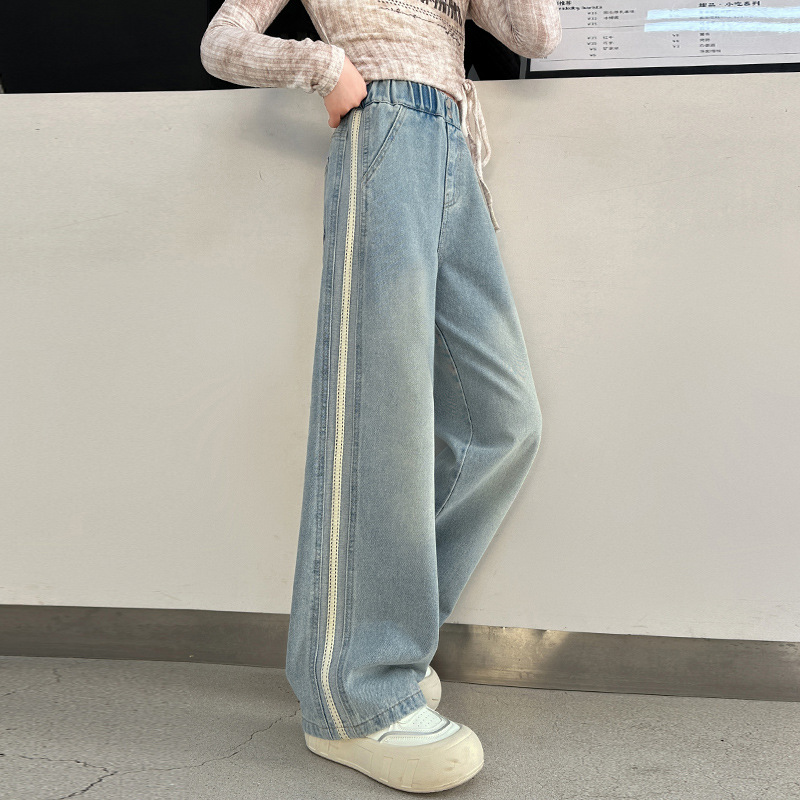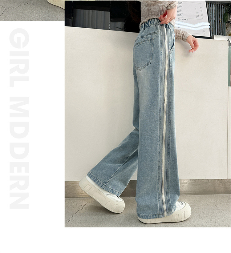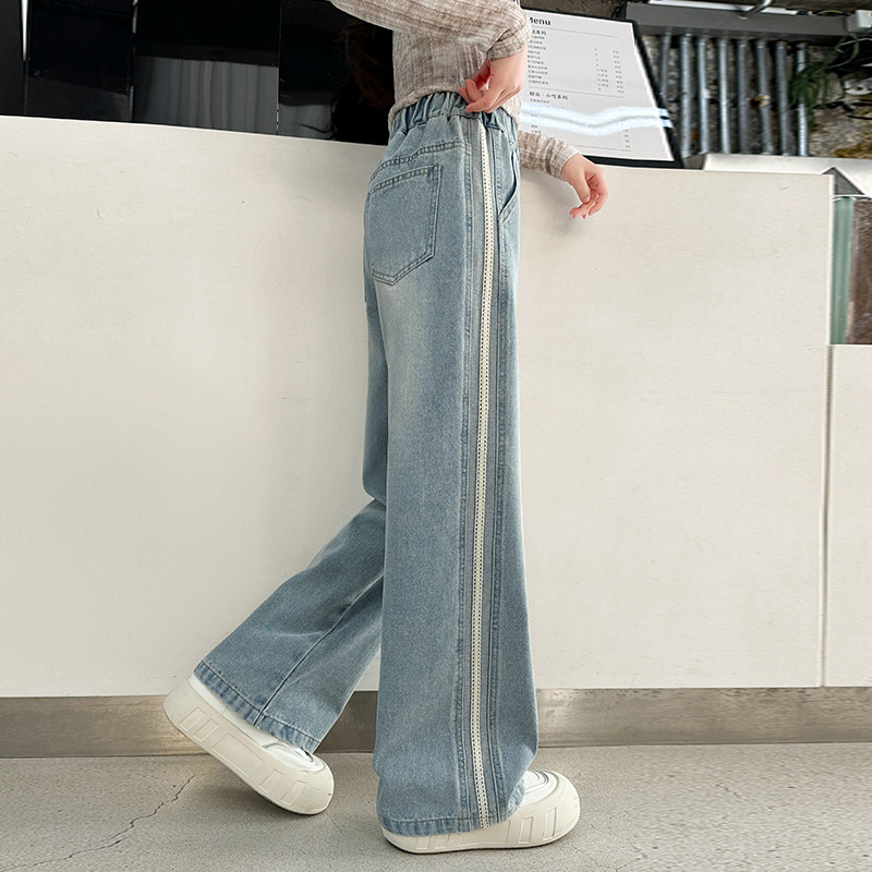 여아 바지 봄 가을 2025 신상 유행 데님 팬츠 중대형 아동용 기모 안감 슬림핏 스트레이트 와이드 팬츠