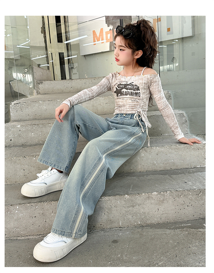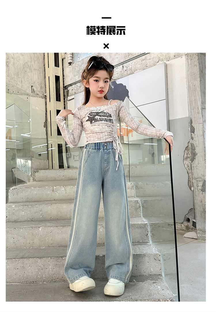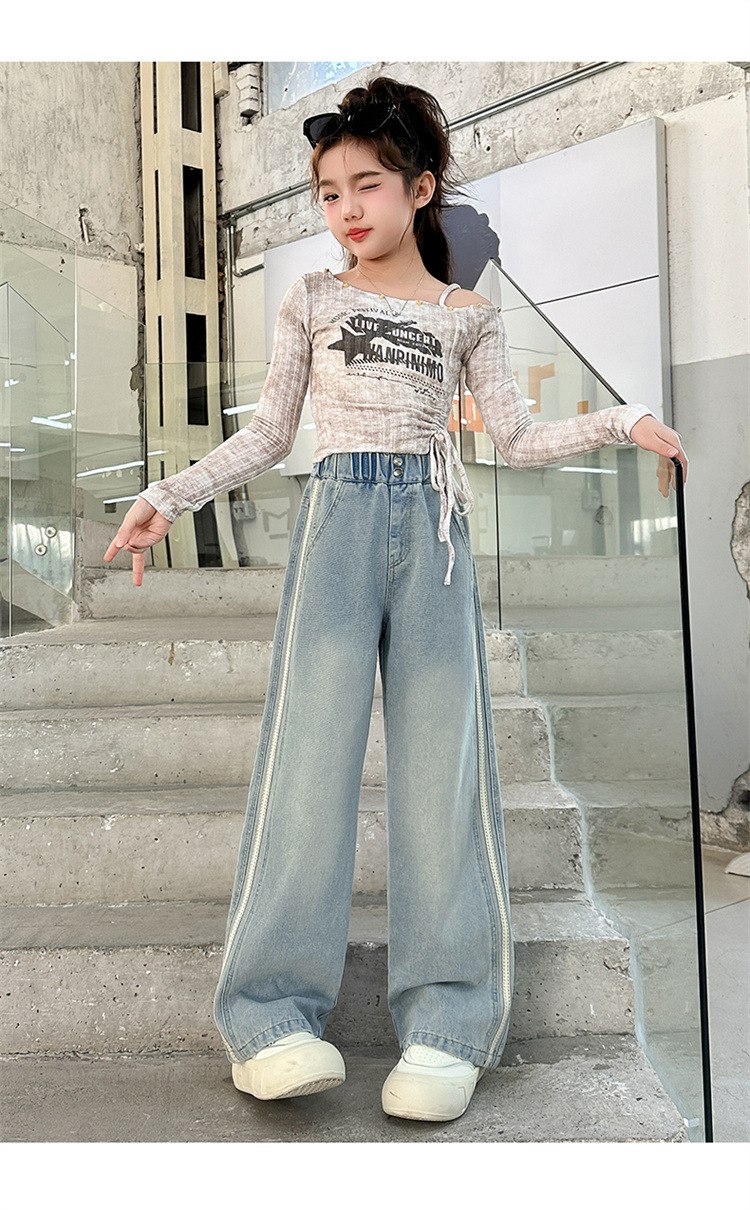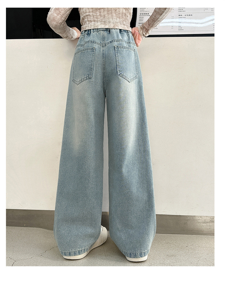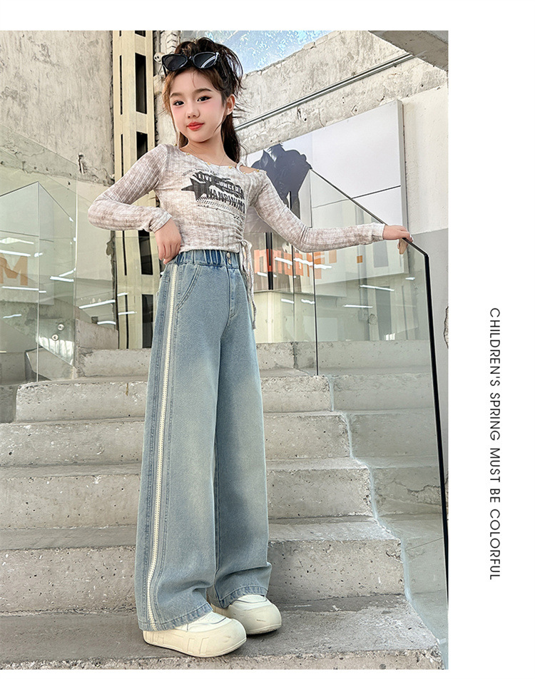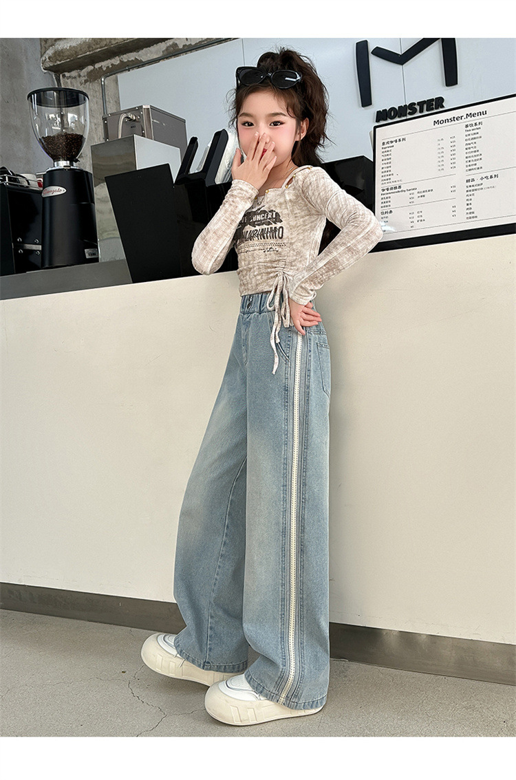 여아 바지 봄 가을 2025 신상 유행 데님 팬츠 중대형 아동용 기모 안감 슬림핏 스트레이트 와이드 팬츠
