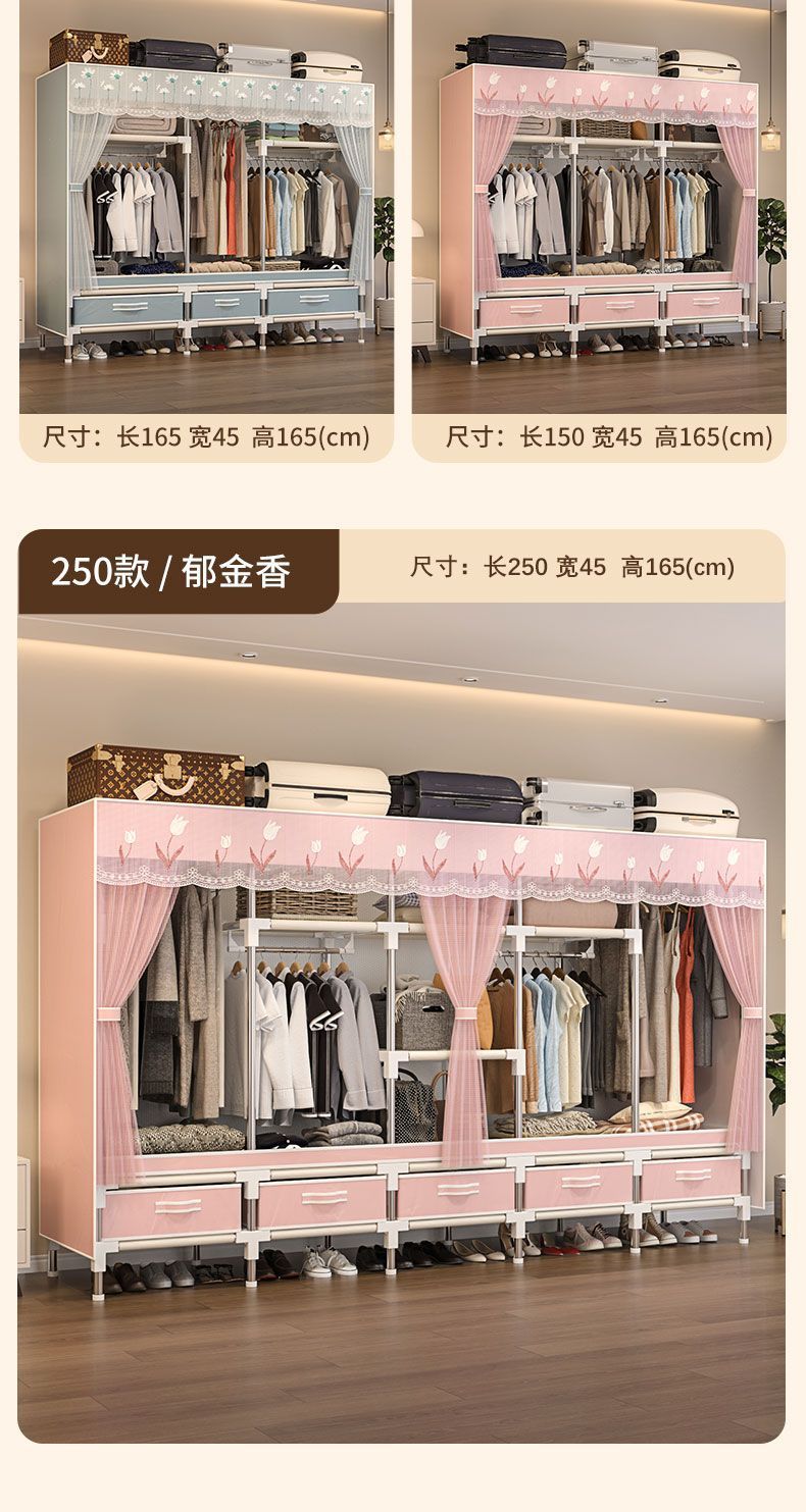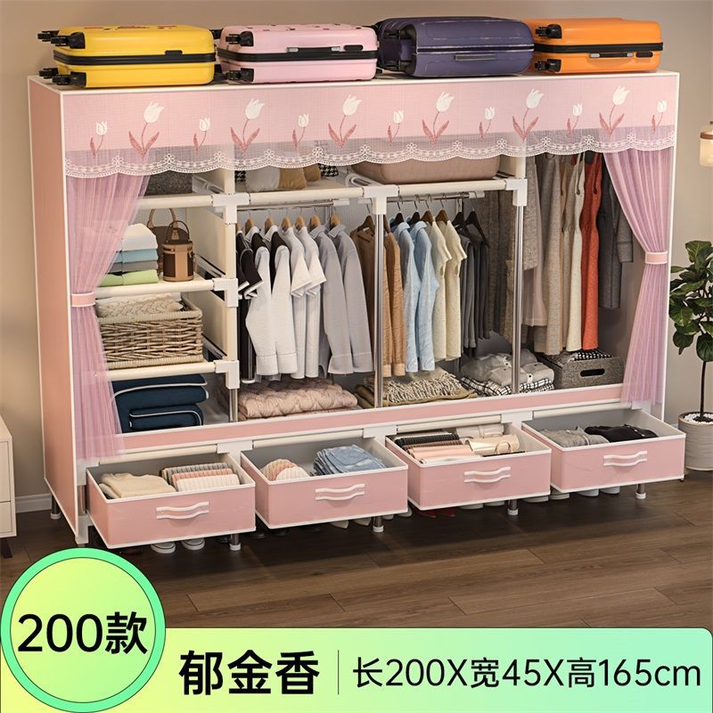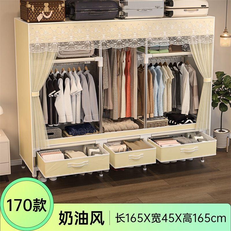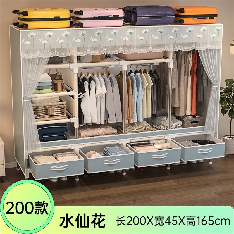 서랍이 있는 간단한 옷장, 가정용 침실 천 옷장, 임대실용, 튼튼하고 내구성이 뛰어난 두꺼운 수납 조립 옷장