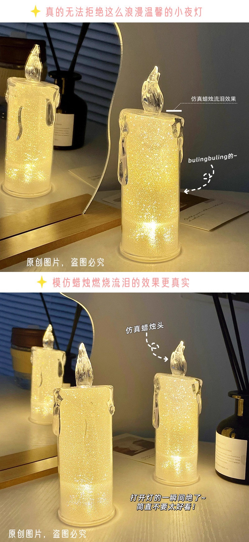 • 장식용 야간 조명 시뮬레이션 캔들 - 베이스가 없는 소형 1호
