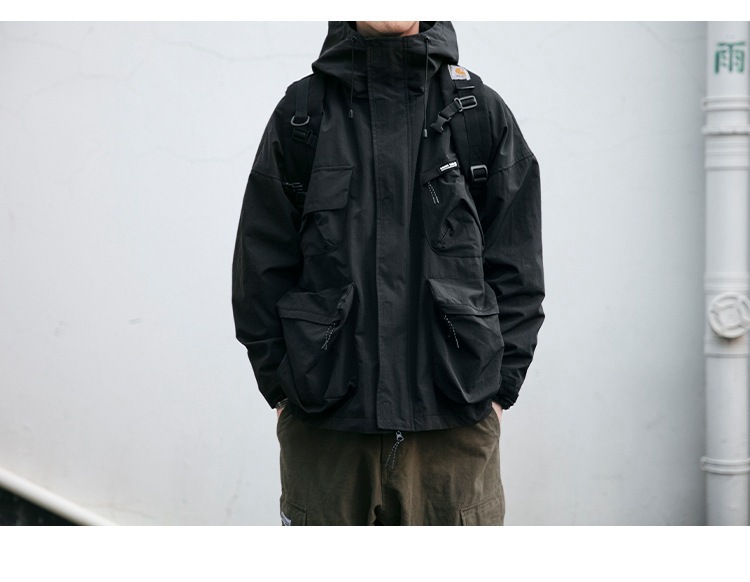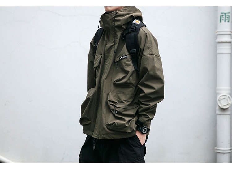 봄, 가을 후드 재킷 남성 트렌디 브랜드 루즈한 입체 포켓 기능성 방풍 재킷 캐주얼 워크 재킷 트렌디