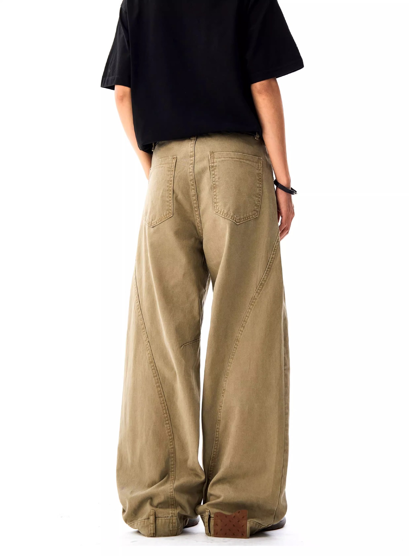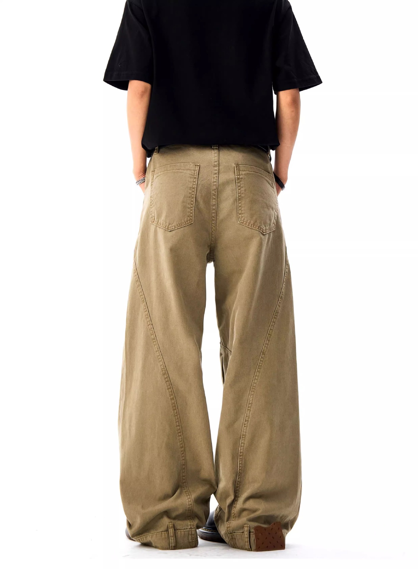 아메리칸 레트로 디컨스트럭티드 캐주얼 씨스레드 워크웨어 청바지 남성용 와이드 레그 바닥 길이 클린핏 리버스웨어 롱팬츠