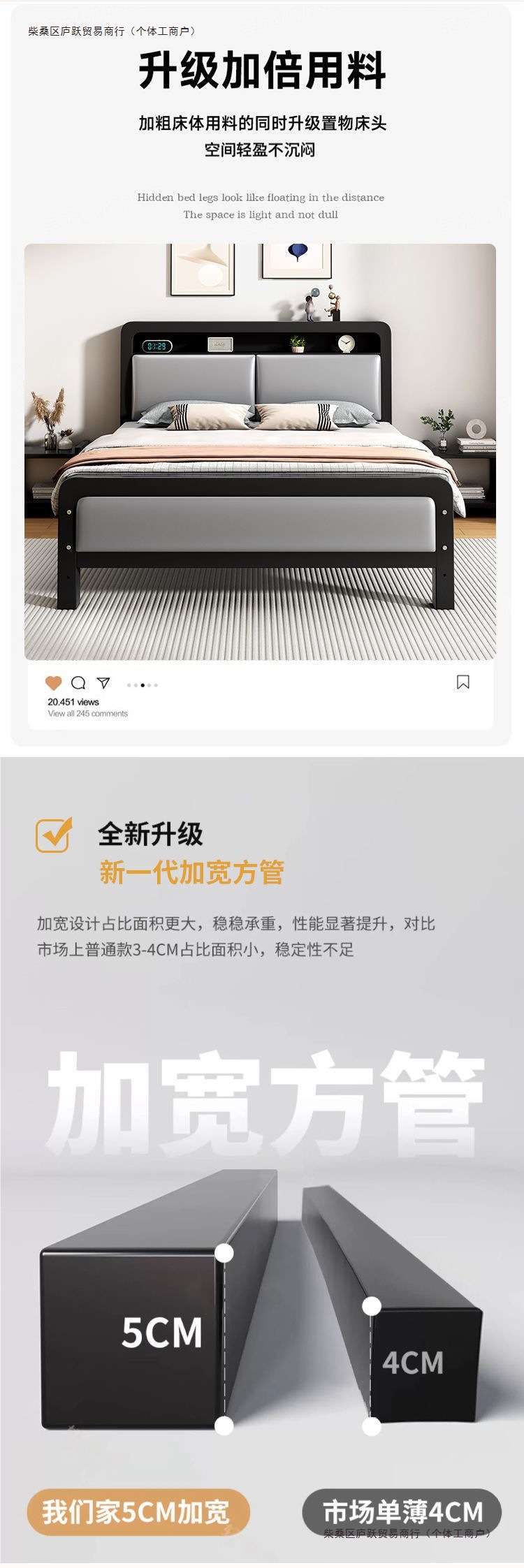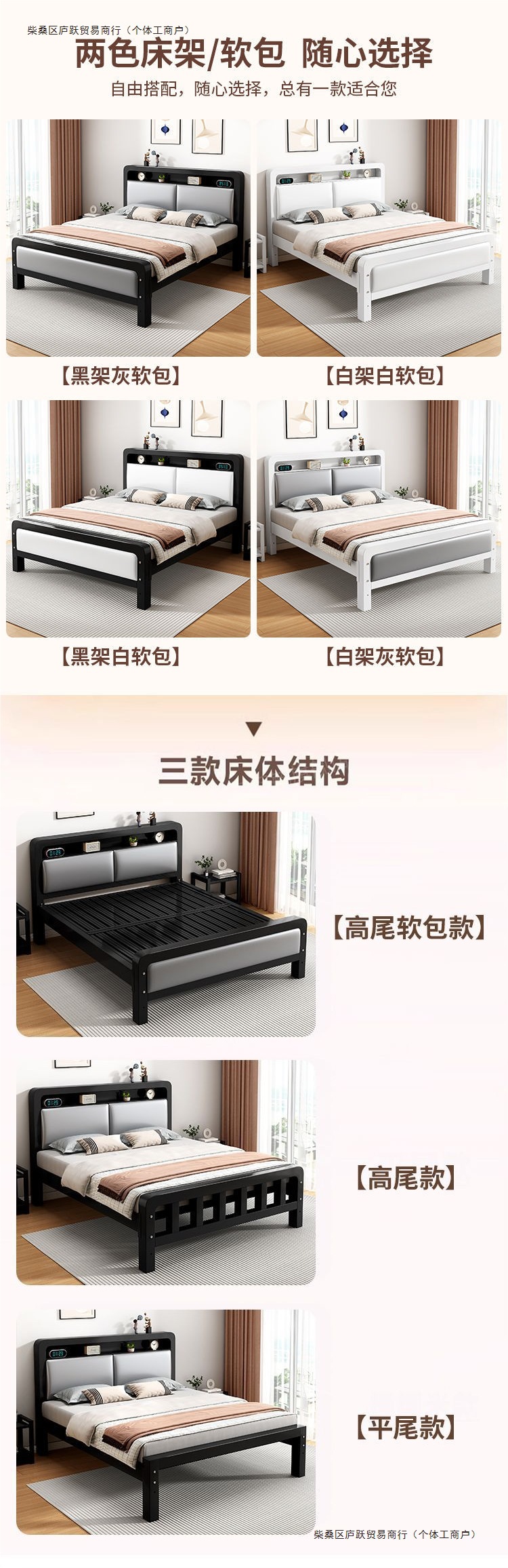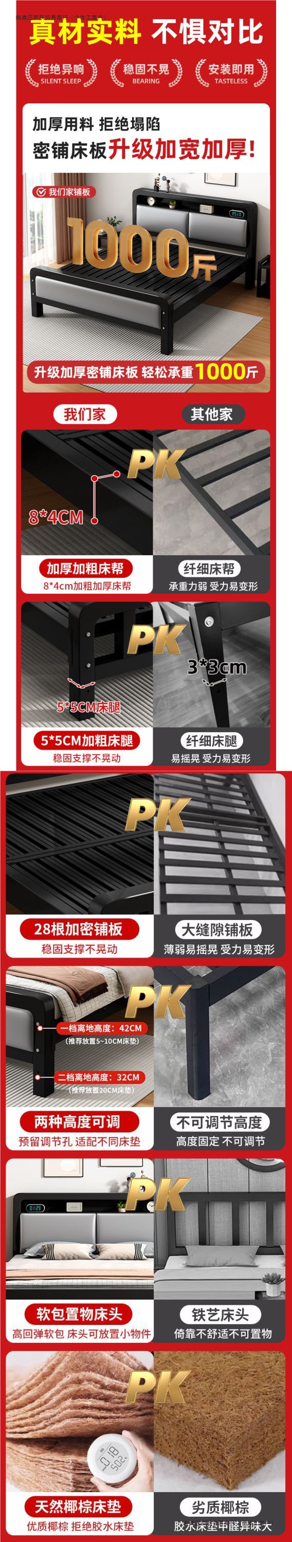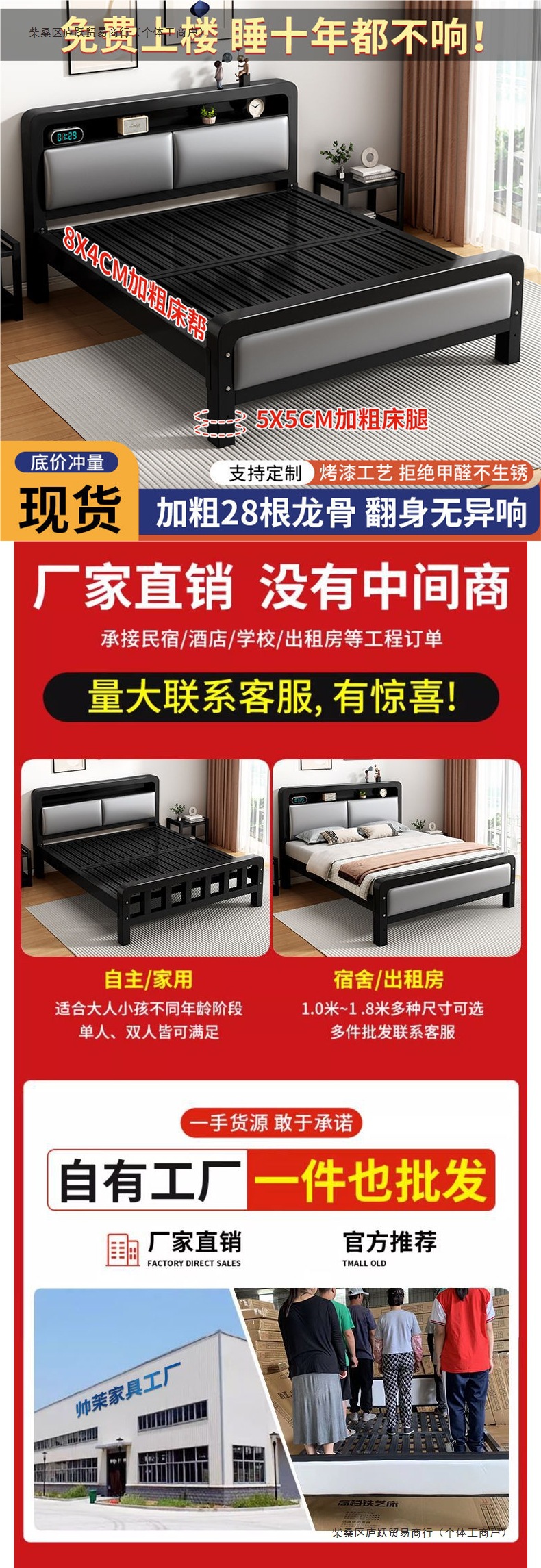침실 철제 침대 가정용 심플 1.8m 두꺼운 더블 침대 임대실 1m 철제 프레임 침대 1.5m 철제 침대스토어 가기