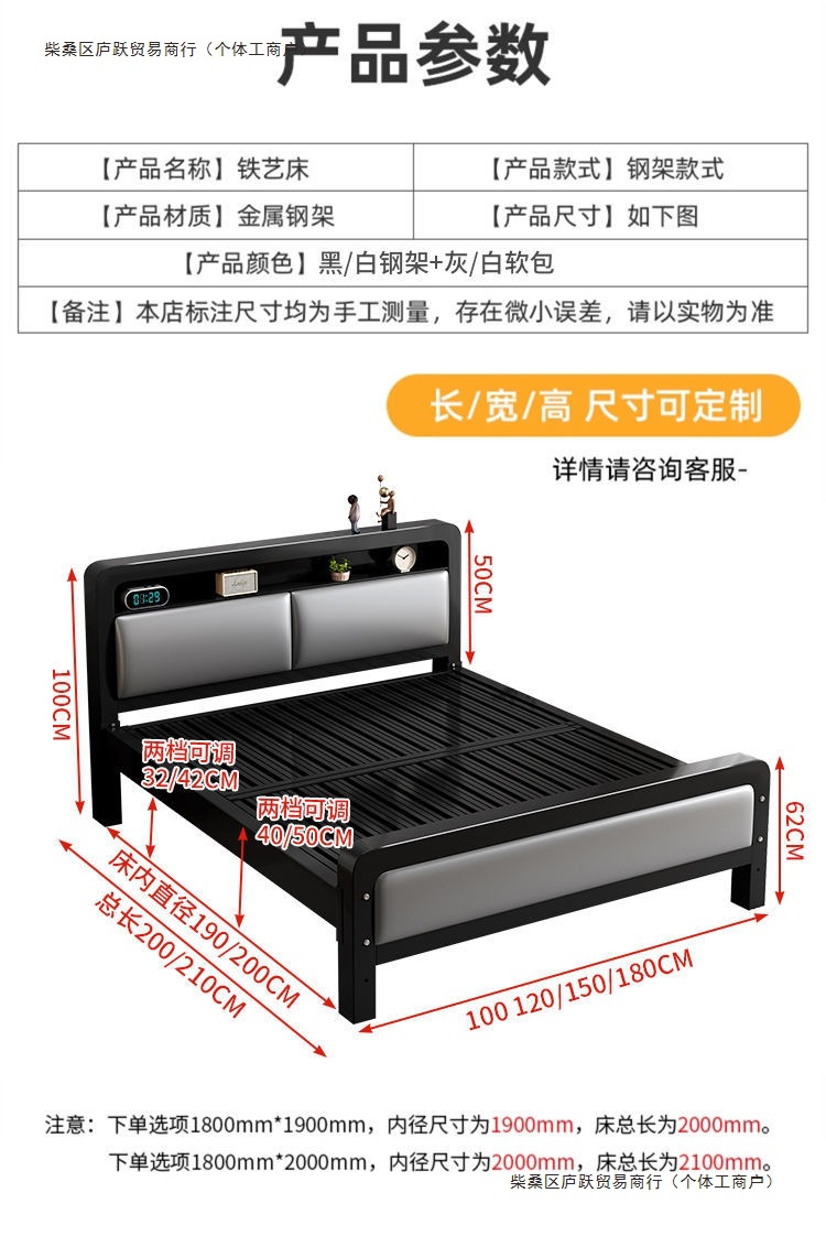 침실 철제 침대 가정용 심플 1.8m 두꺼운 더블 침대 임대실 1m 철제 프레임 침대 1.5m 철제 침대