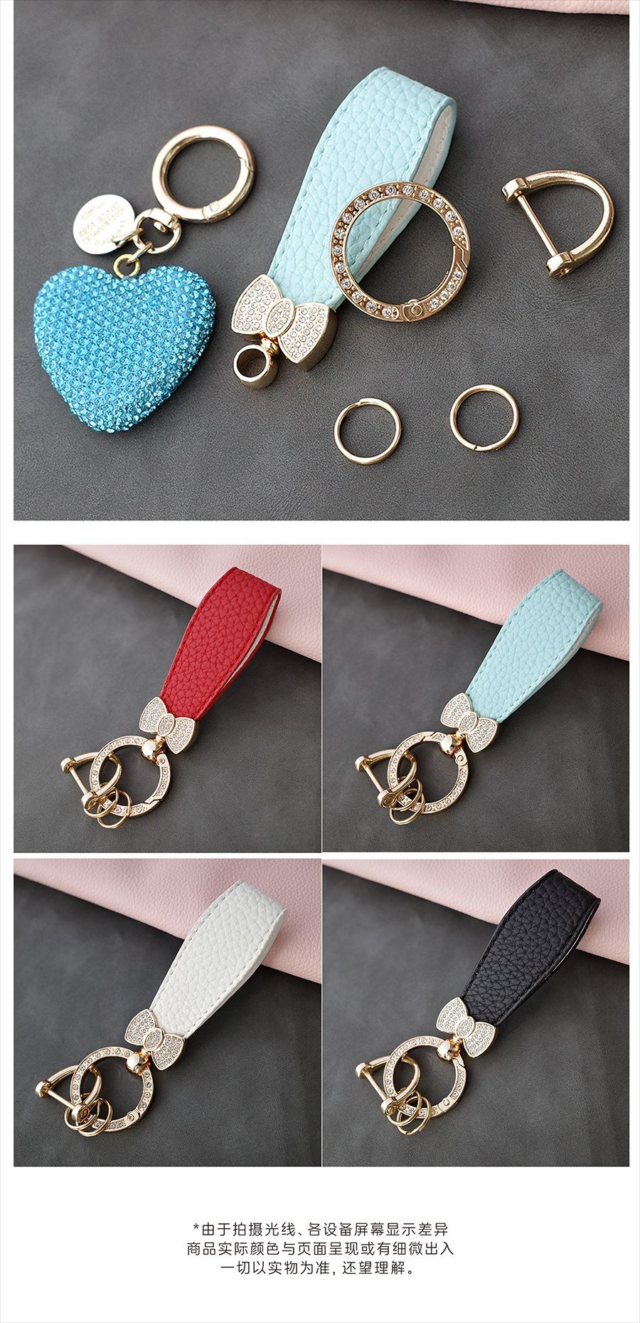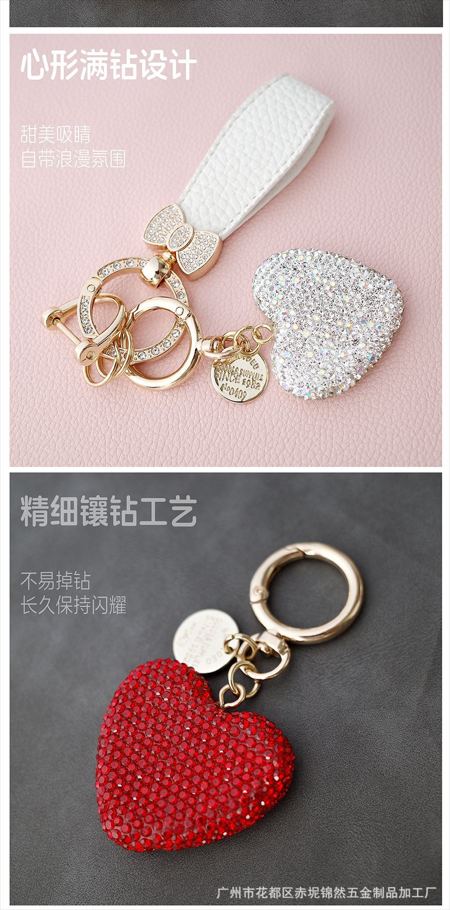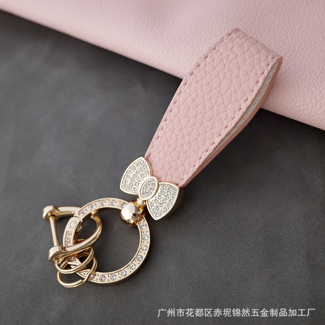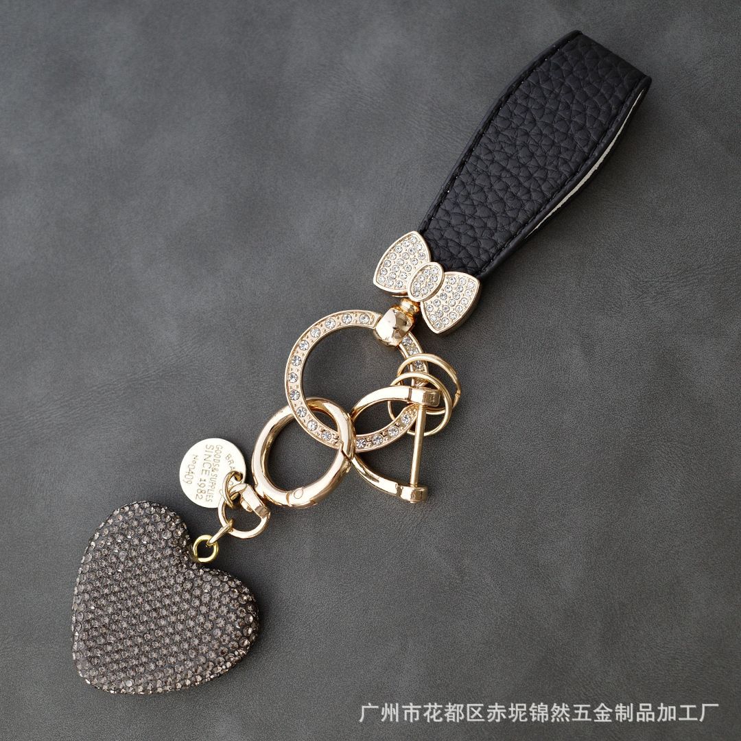 다이아몬드가 박힌 복숭아 하트 점토 열쇠 고리, 다이아몬드가 가득한 자동차 열쇠 펜던트, 보석 가방, 딸기 리본 하트 펜던트