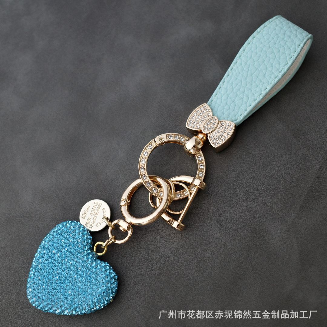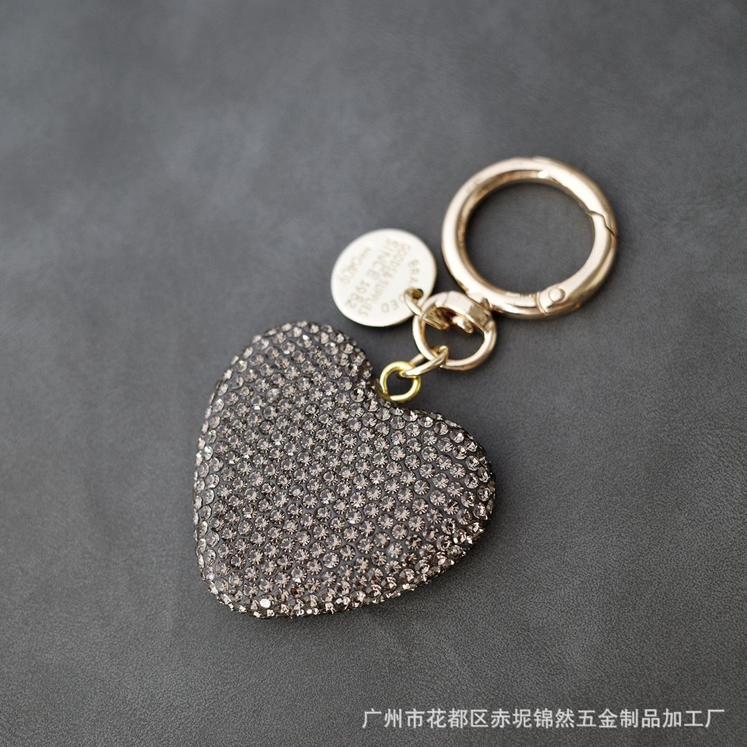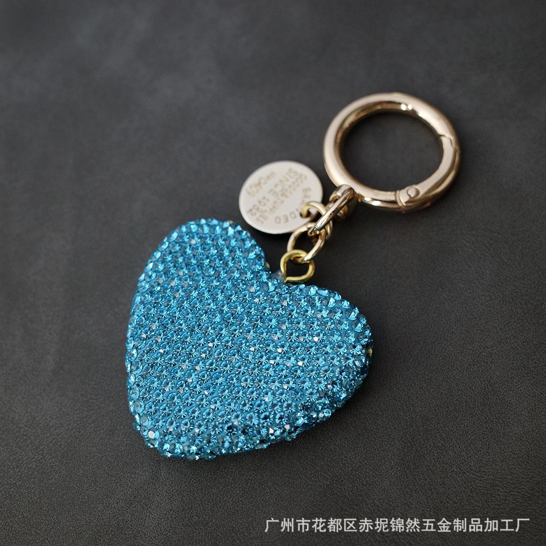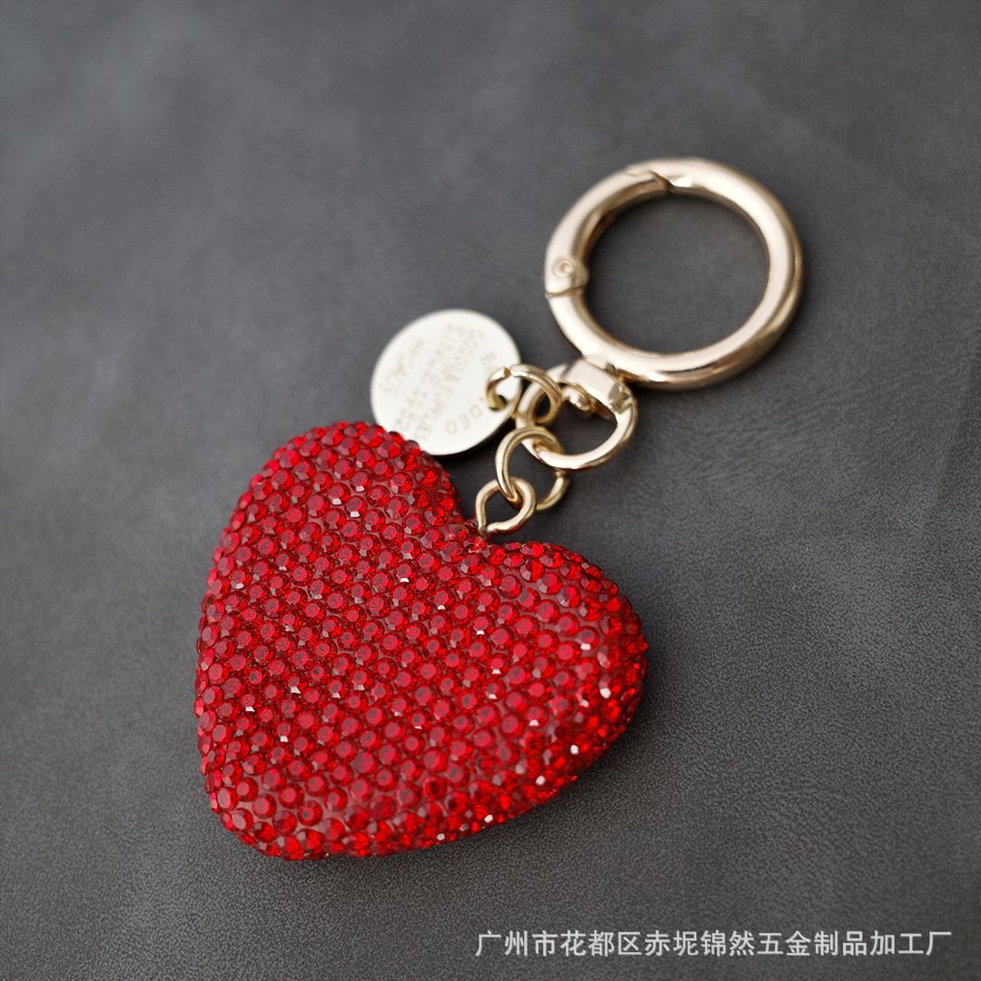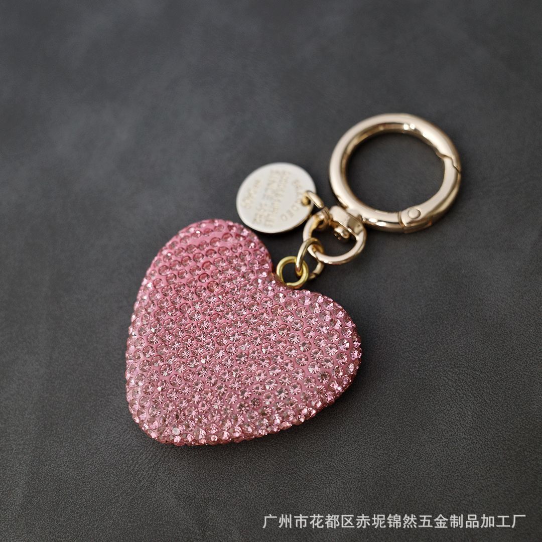 다이아몬드가 박힌 복숭아 하트 점토 열쇠 고리, 다이아몬드가 가득한 자동차 열쇠 펜던트, 보석 가방, 딸기 리본 하트 펜던트스토어 가기