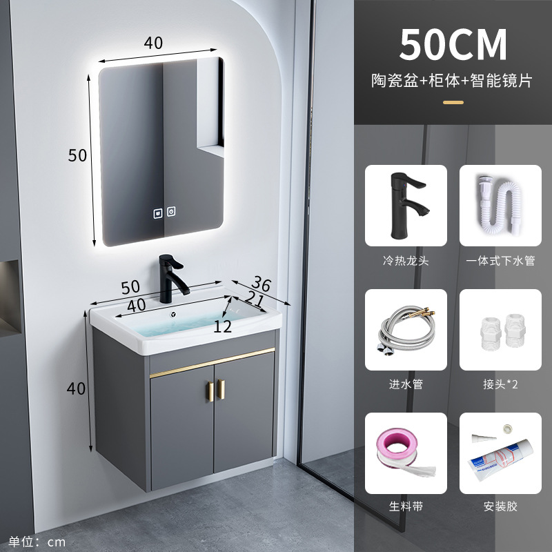 욕실 세면대 캐비닛 조합 작은 공간 알루미늄 욕실 캐비닛 통합 세라믹 세면대 가정용 세면대