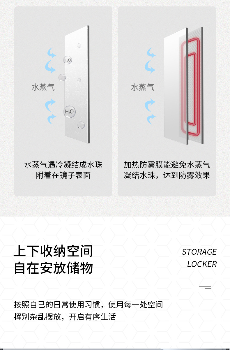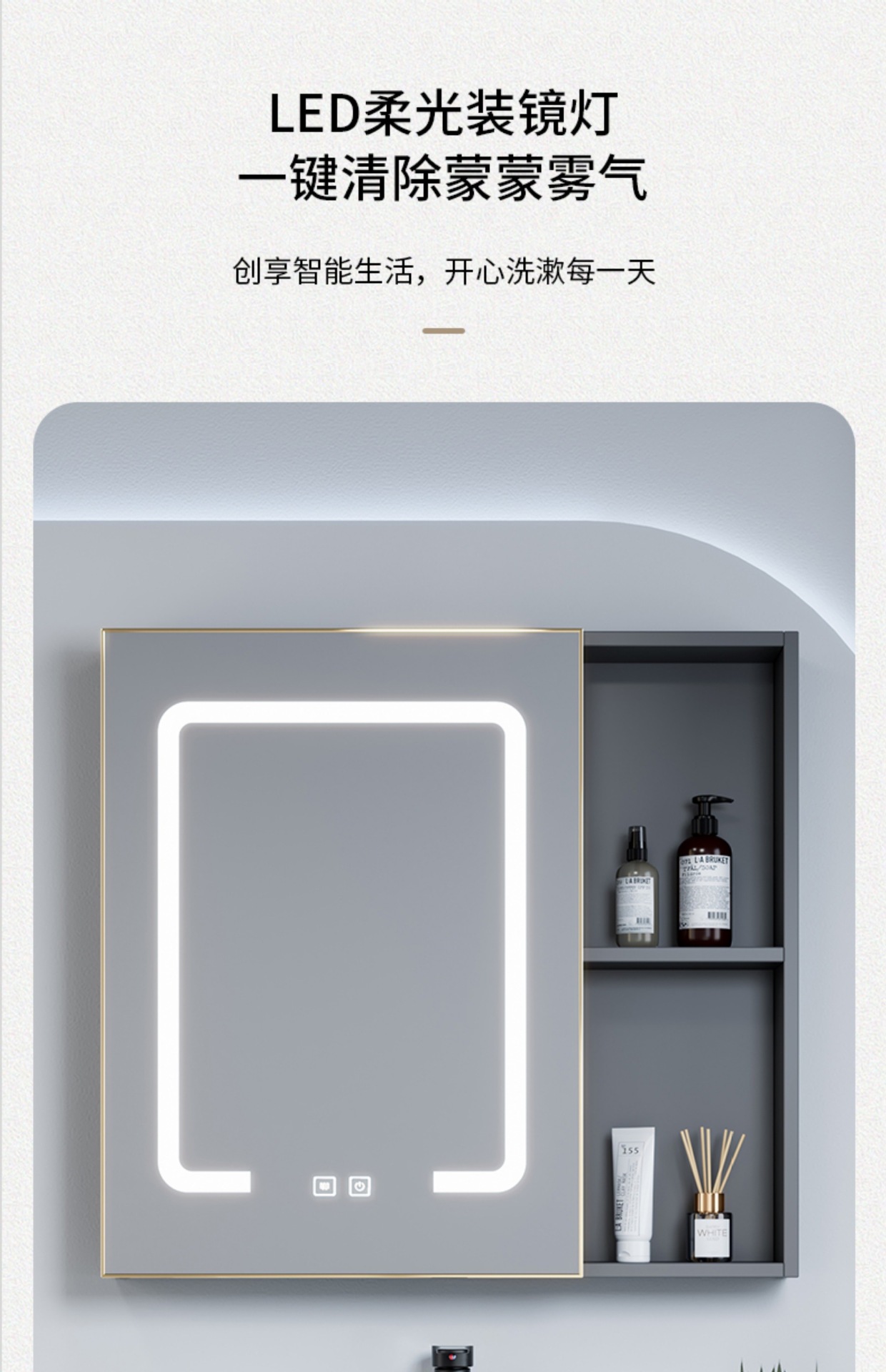 • 80 그레이 평면 세트 + 수건걸이 스마트 거울 캐비닛 [폭 48] 김서림 방지 + 조명