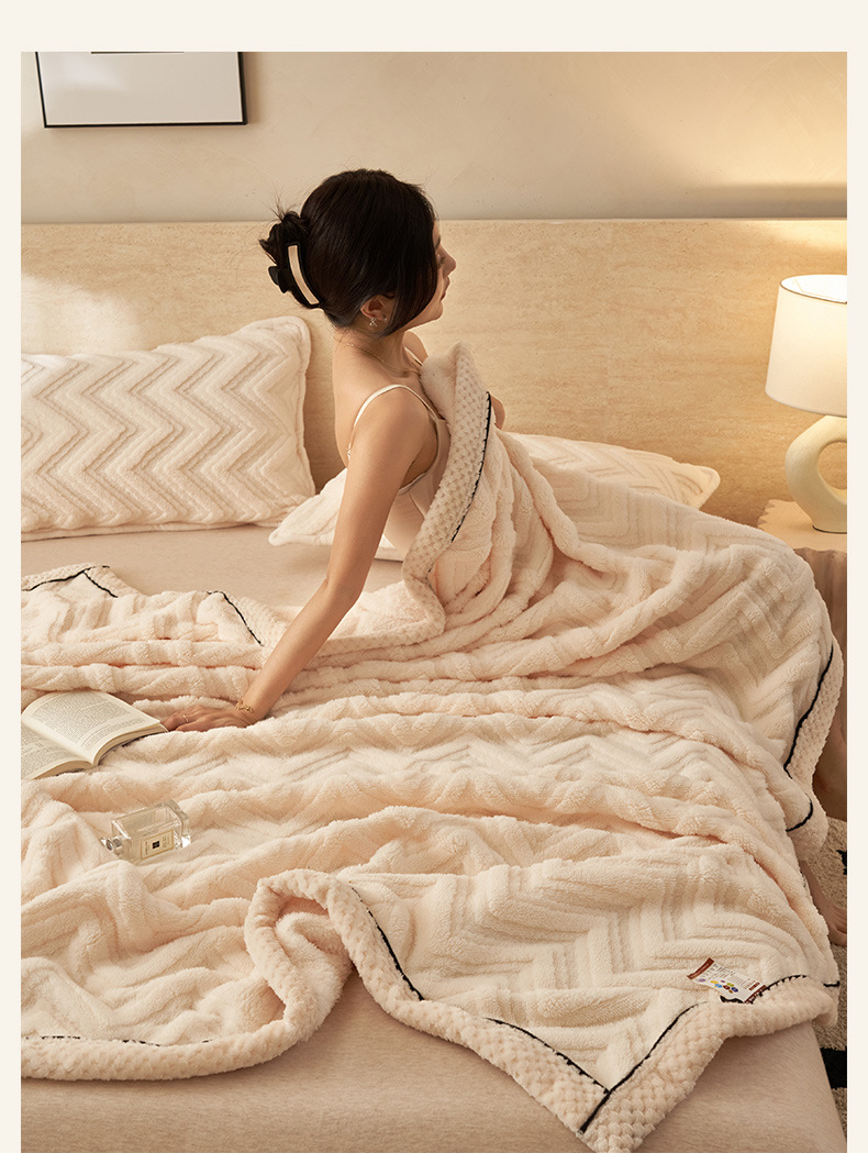 새로운 국경 간 고중량 피부 친화적인 벨벳 태피터 3겹 자카드 담요 두꺼운 더블 따뜻한 낮잠 담요