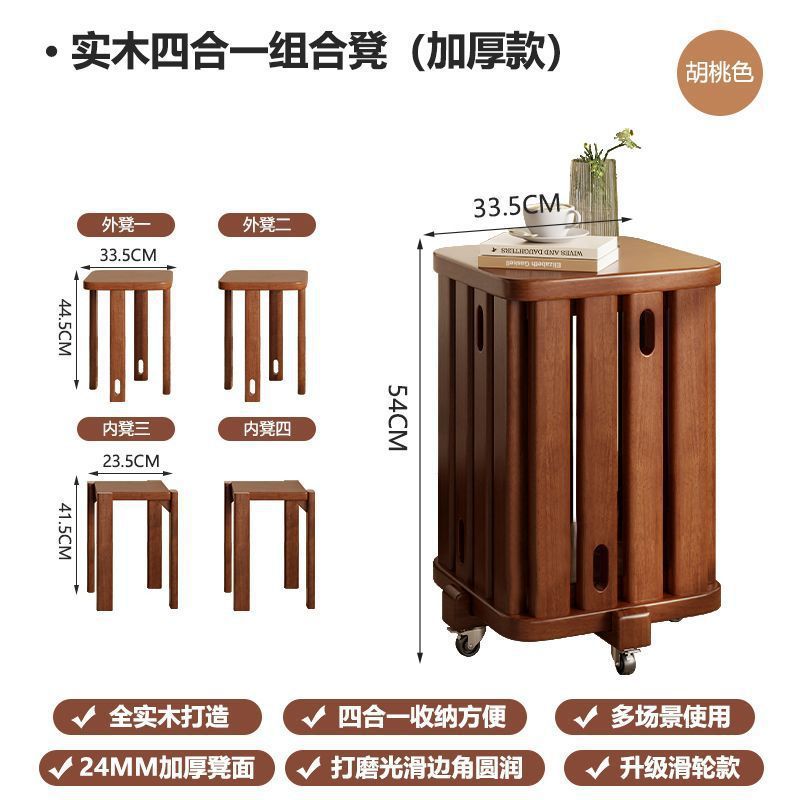 스택 스툴 홈 다기능 단단한 나무 낮은 의자 레스토랑 의자 침실 라운드 의자 의자 라이트 럭셔리 벤치 새로운 중국 스타일 사이드 테이블