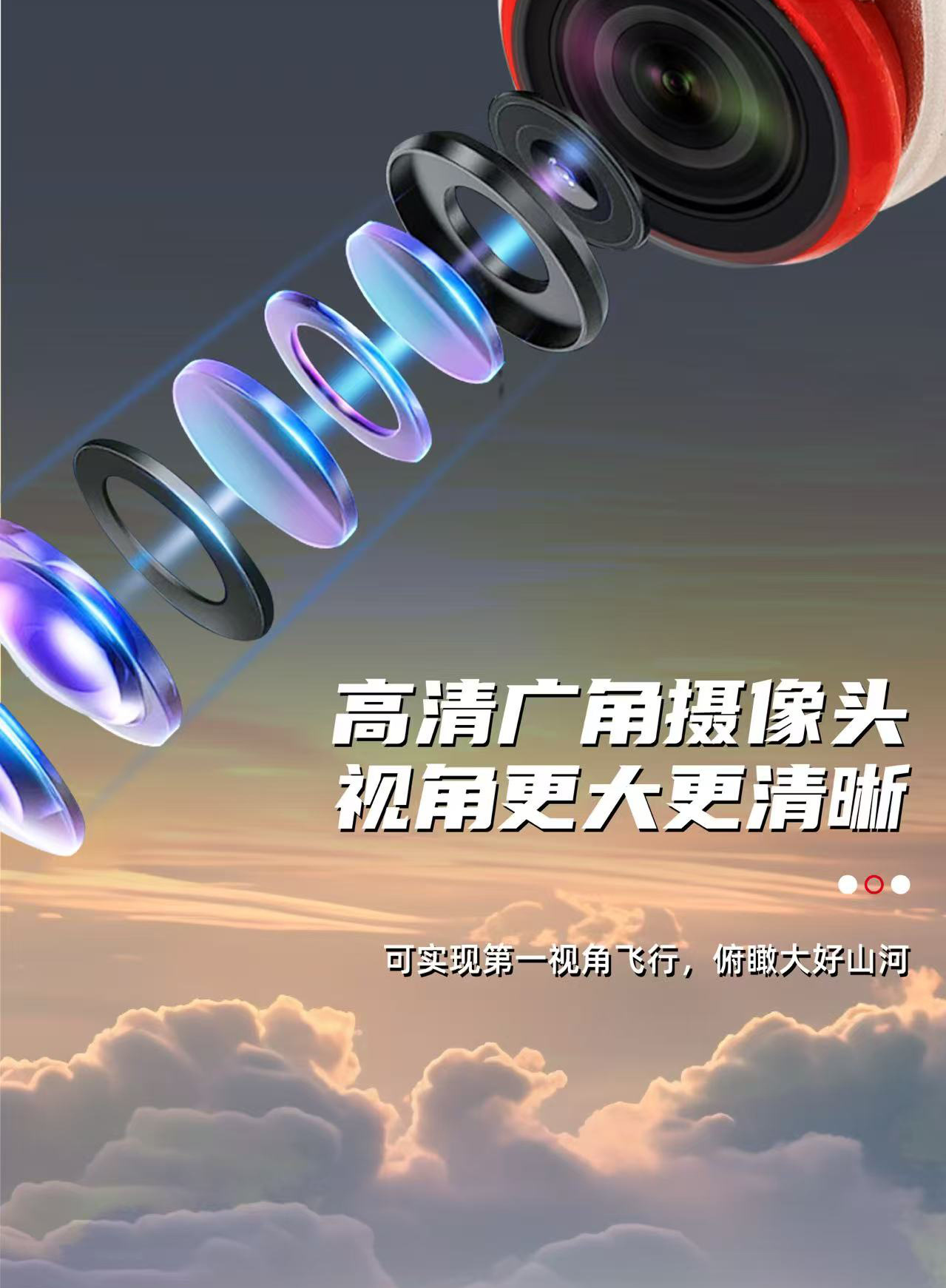 1、搭载广角摄像头,图像实时回传,享受第一视角飞行乐趣。(该功能为选配)