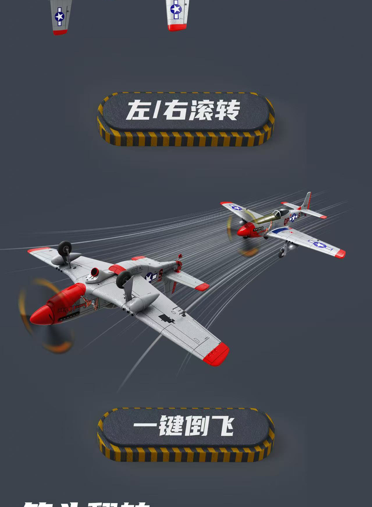 7、可在手动模式(MM)、三轴陀螺仪(3D)和六轴陀螺仪(6G)三种飞行模式之间切换,体验不同的操作乐趣, 可实现一键特技飞行表演功能。如横滚,倒飞,筋斗……"