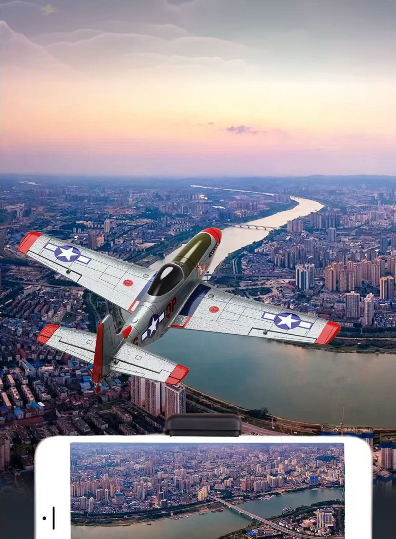 产品配置:彩盒包装*1、固定翼飞机*1、遥控器*1、USB充电器*1、锂电池*1、配件包*1(螺旋桨+蒸馏帽*1、左起落架*1、右起落架*1、尾轮*1、、螺丝刀*1、安装扳手*1)说明书*1。摄像头(可选),遥控器支架碳纤维手机支架(可选)