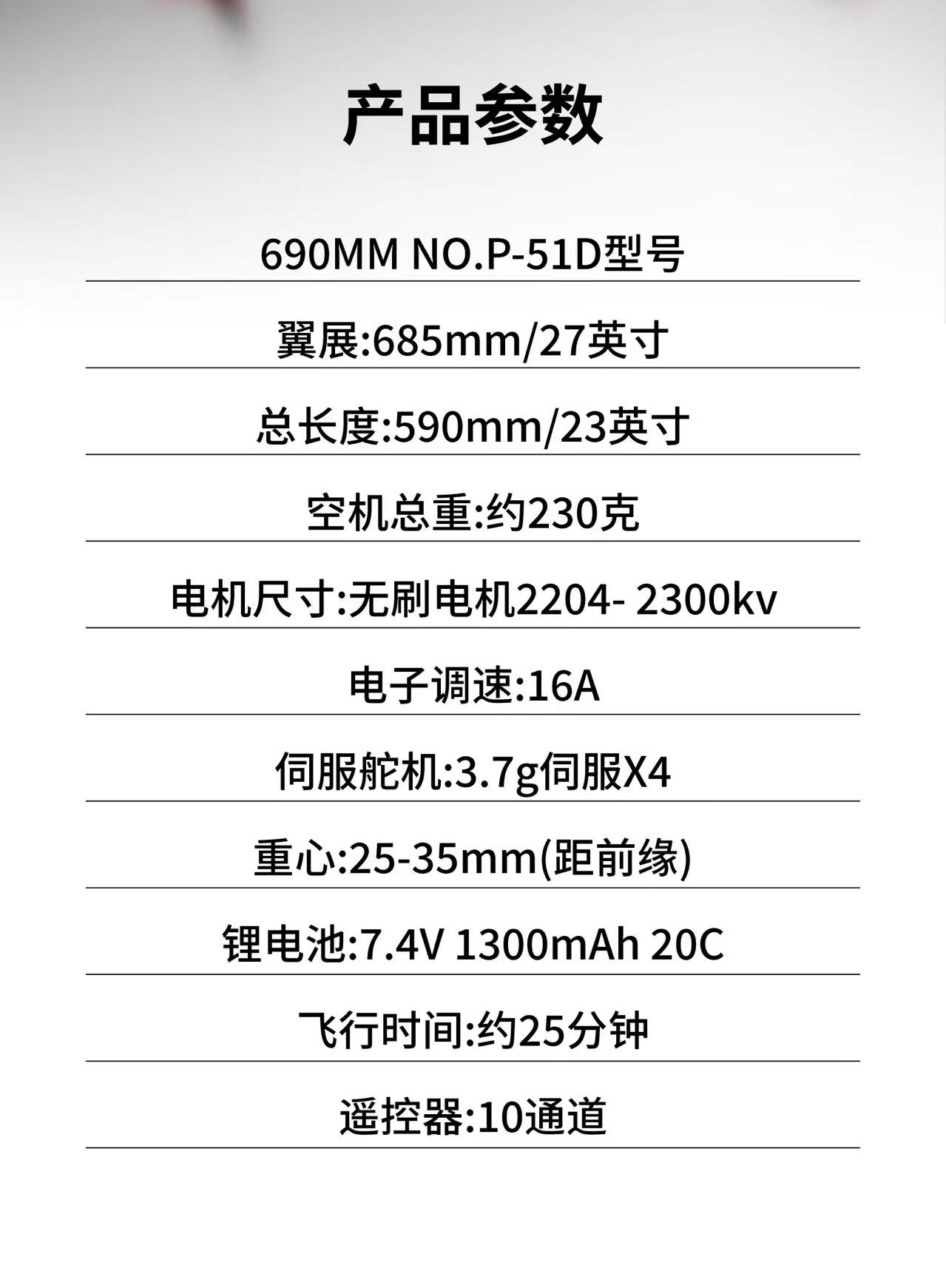 产品规格(mm):机翼翼展685mm 机身长度590mm
