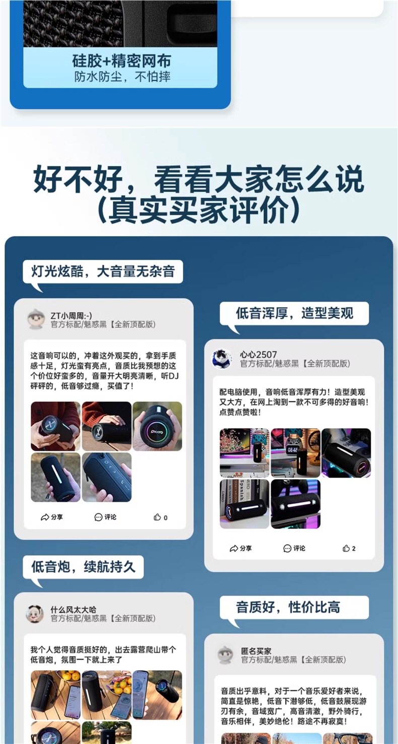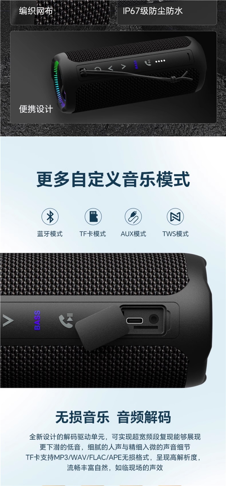 • Charming Black [새로운 상위 버전] 1.1 채널/35W 고출력/6600mAh 긴 배터리 수명/중저음 스위치