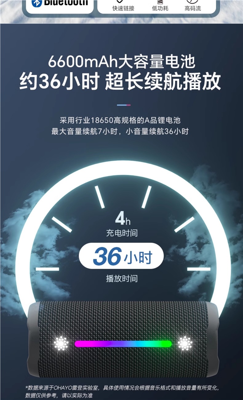 • Starry Sky Grey [새로운 상위 버전] 1.1 채널/35W 고출력/6600mAh 긴 배터리 수명/중저음 스위치