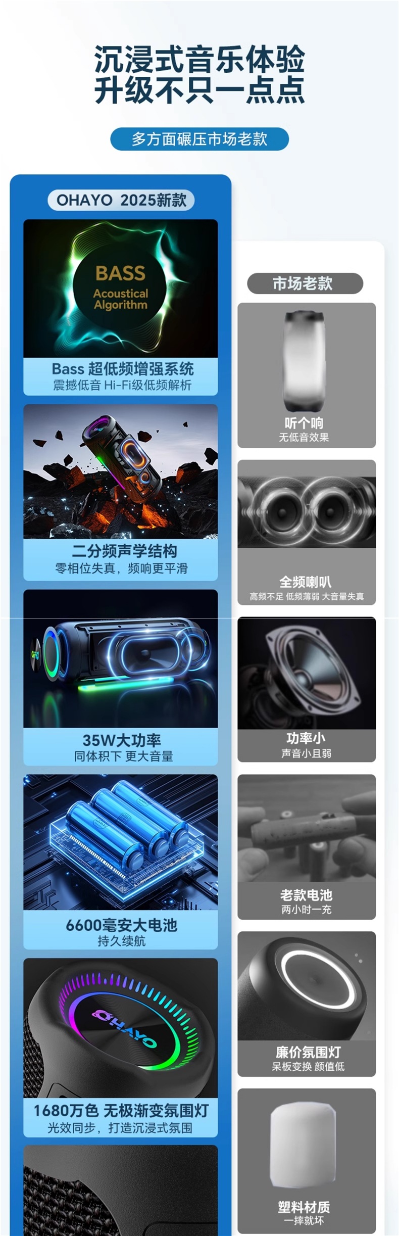 • Nite Blue [새로운 상위 버전] 1.1 채널/35W 고출력/6600mAh 긴 배터리 수명/중저음 스위치