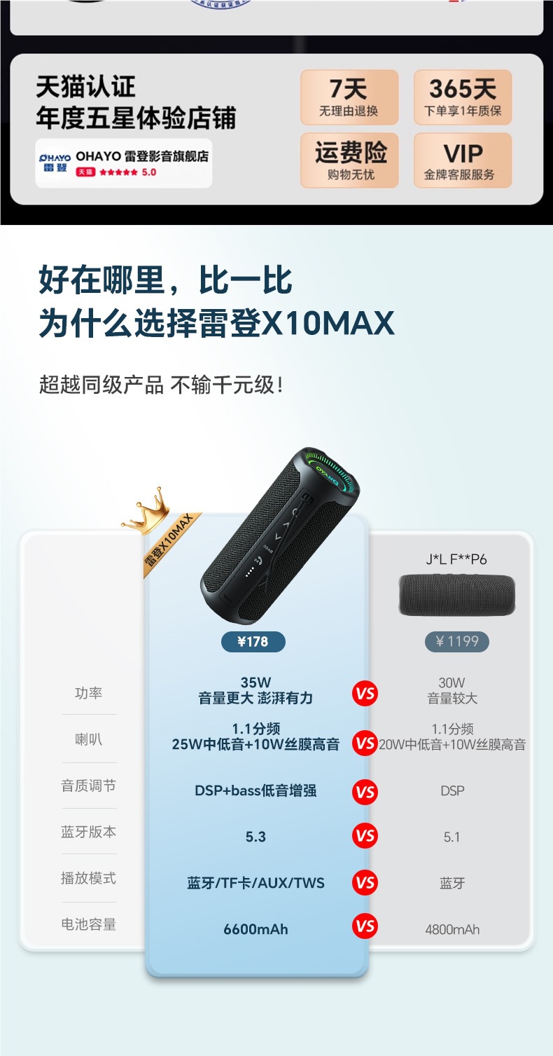 x10MAX 블루투스 스피커 35W 대용량 슈퍼 서브우퍼 홈 야외 휴대용 자동차 소형 스피커스토어 가기