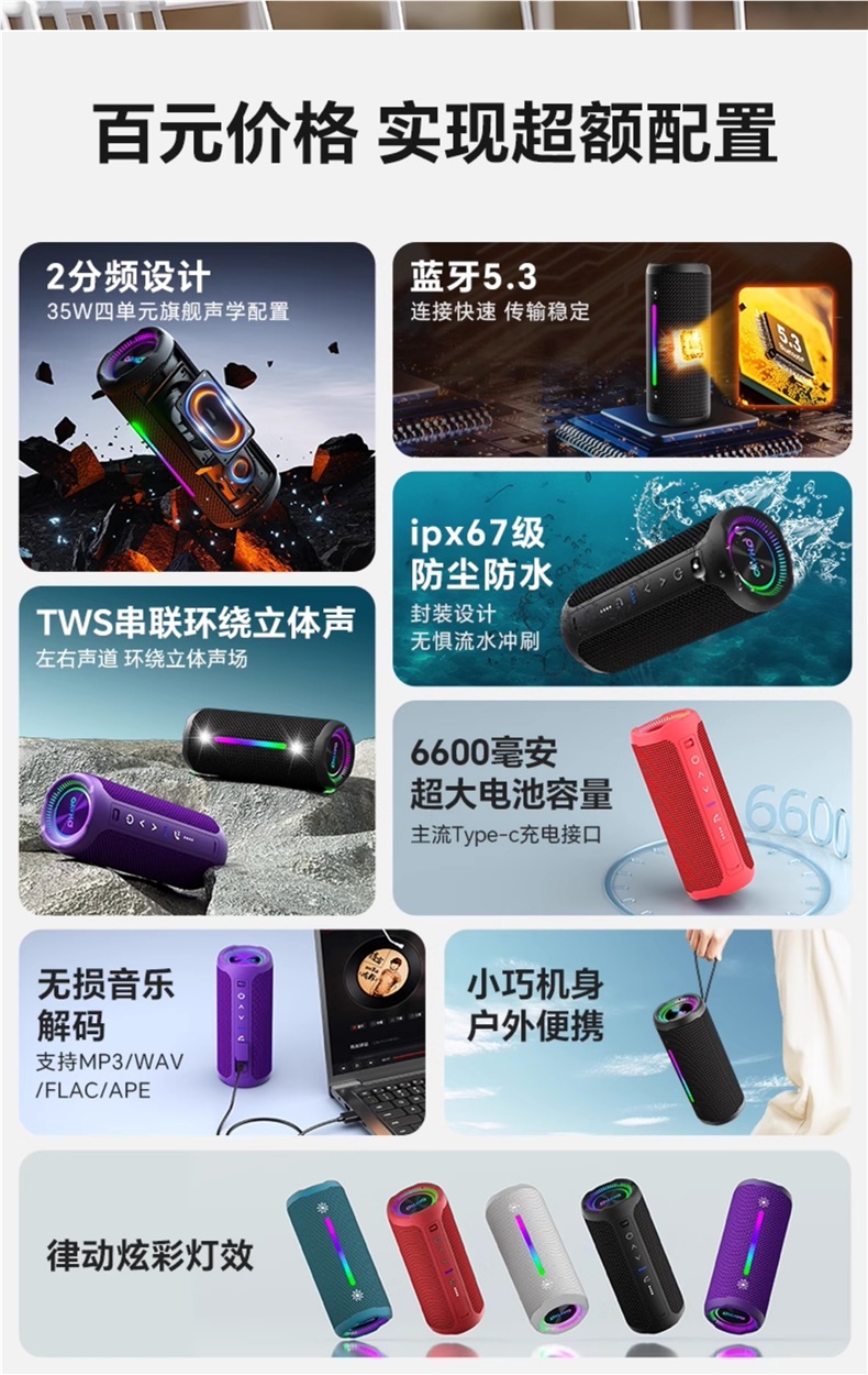 • Flame Red [새로운 상위 버전] 1.1 채널/35W 고출력/6600mAh 긴 배터리 수명/중저음 스위치