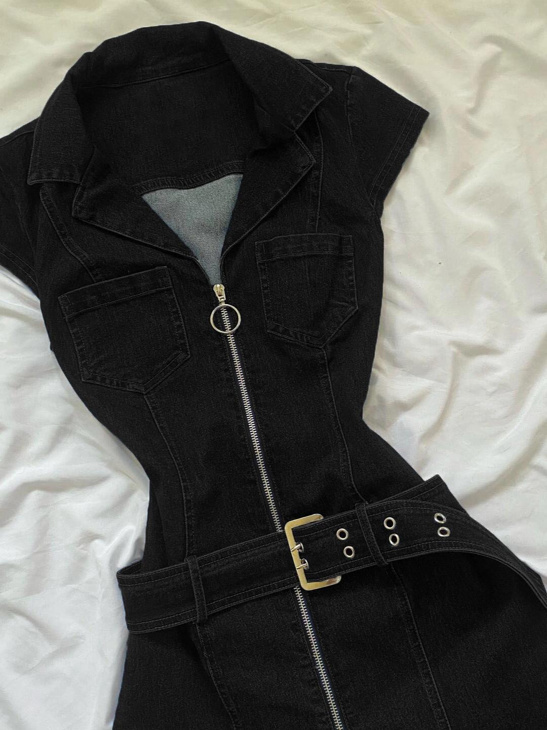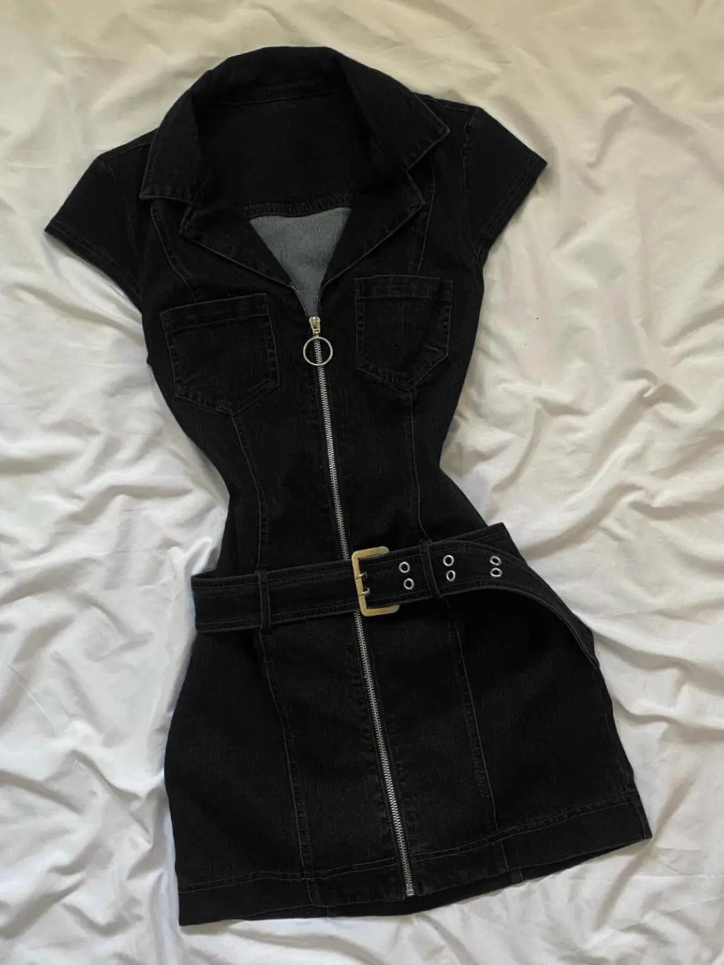 봄과 여름 새로운 스타일 핫 소녀 복고풍 민소매 데님 드레스 여성 틈새 디자인 허리 슬리밍 슬림 데님 스커트스토어 가기
