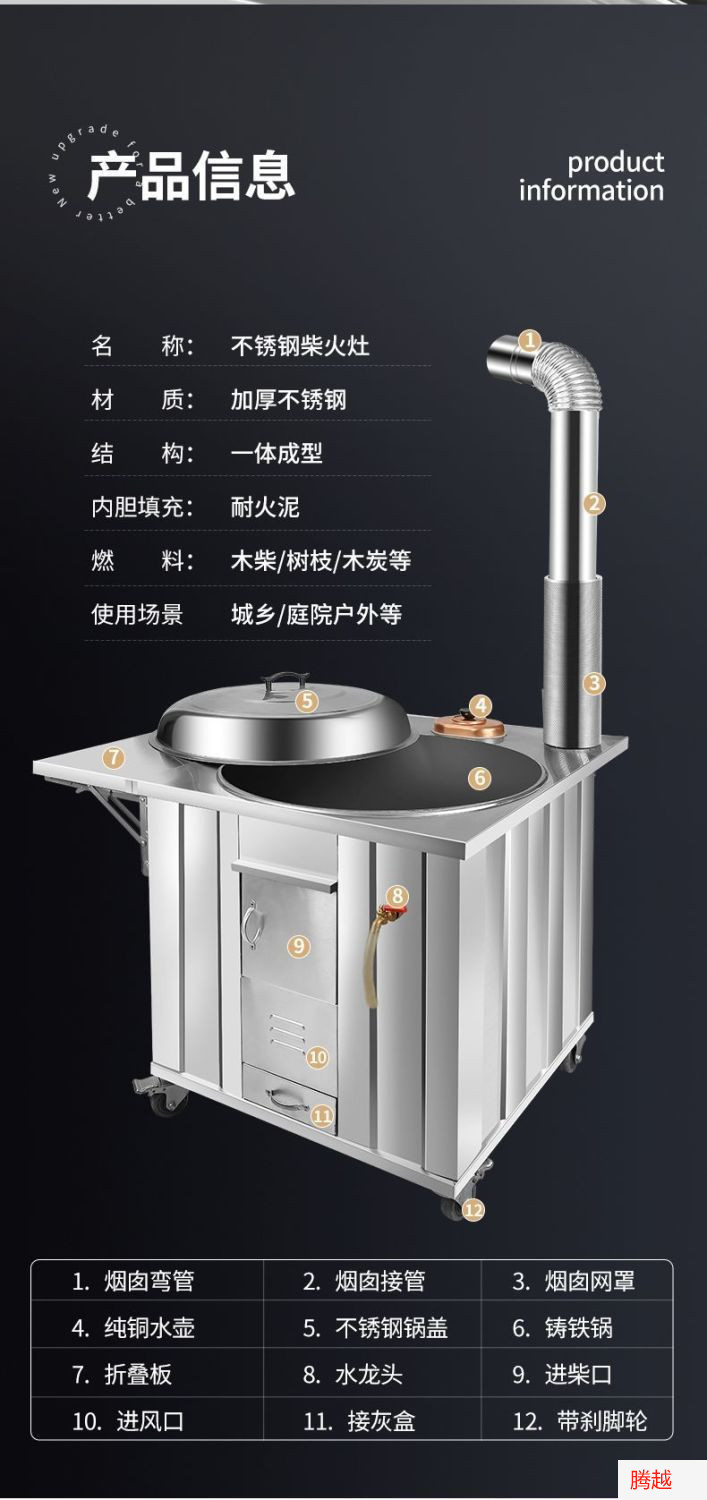 • 국가 표준 304 강화 - 30년 보증 - 전체 기계의 두께가 2배 더 두꺼움 76cm 단일 스토브 + 측면 패널 + 물