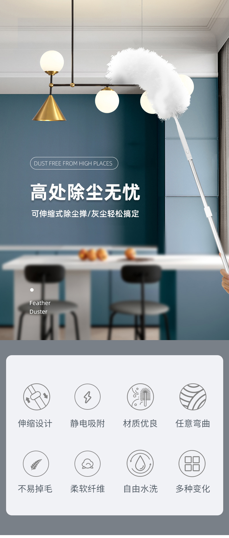 • ₱【전체 길이 156cm】접이식 먼지떨이 + 먼지떨이 헤드
