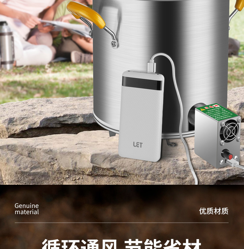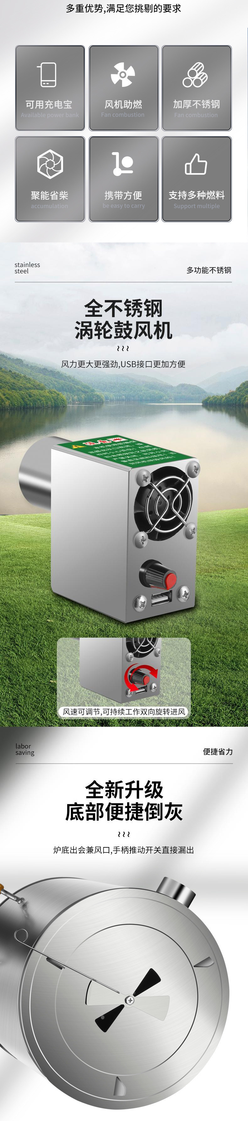 • 무연 난로 + 팬 + 보조베터리 + 선물 가방 - 수출 품질 스테인레스 스틸 무연 두꺼운 무연 장작 난로