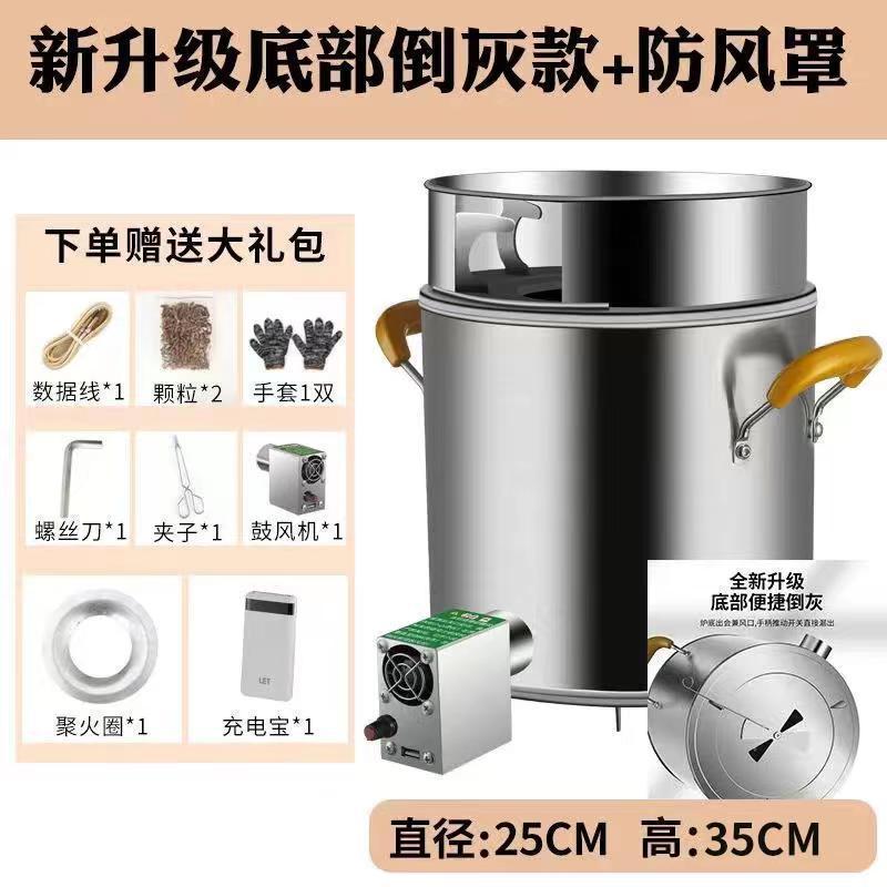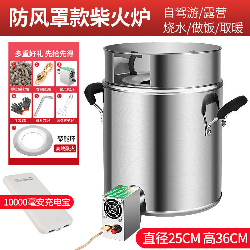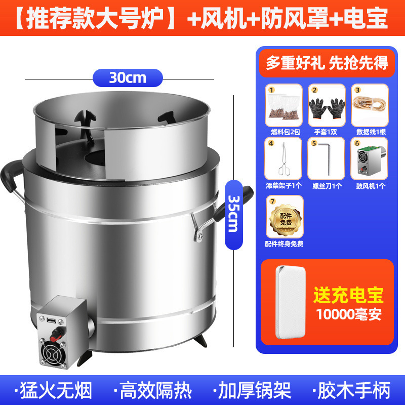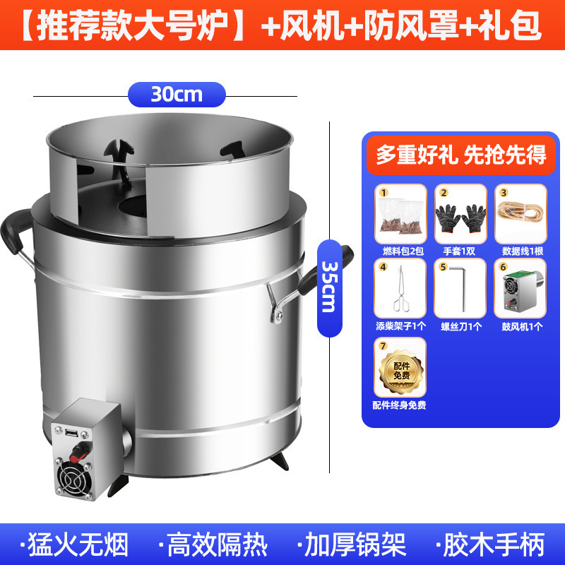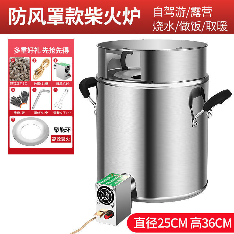 • [넓은 대형 스토브] + 팬 + 방풍 커버 + 전기 보물 - 수출 품질 스테인레스 스틸 무연 두꺼운 무연 장작 난로