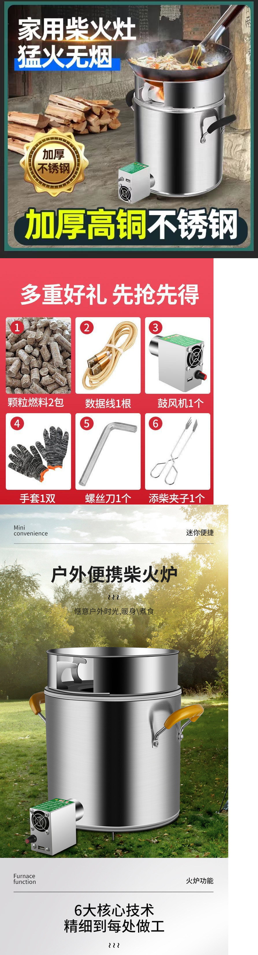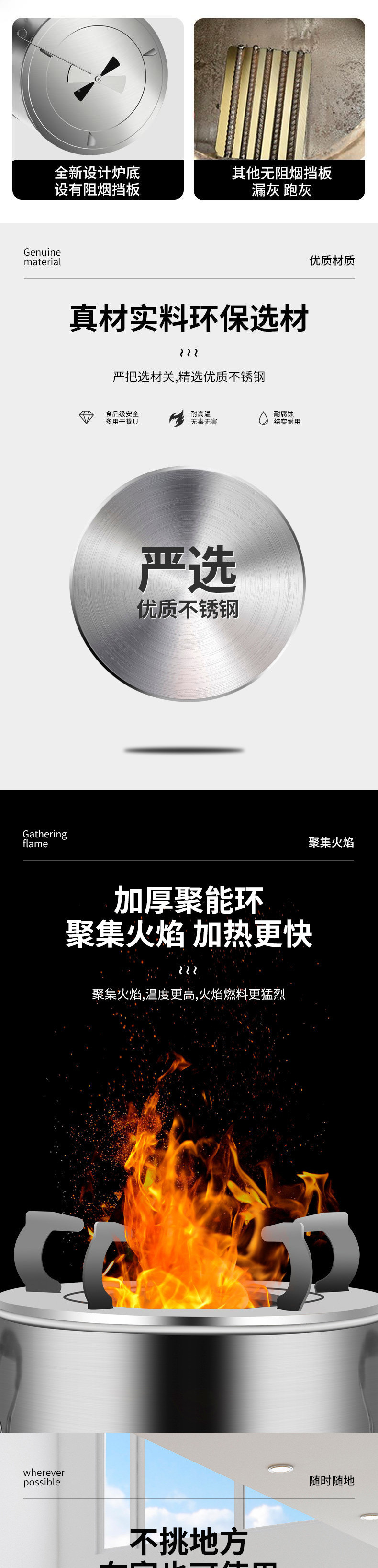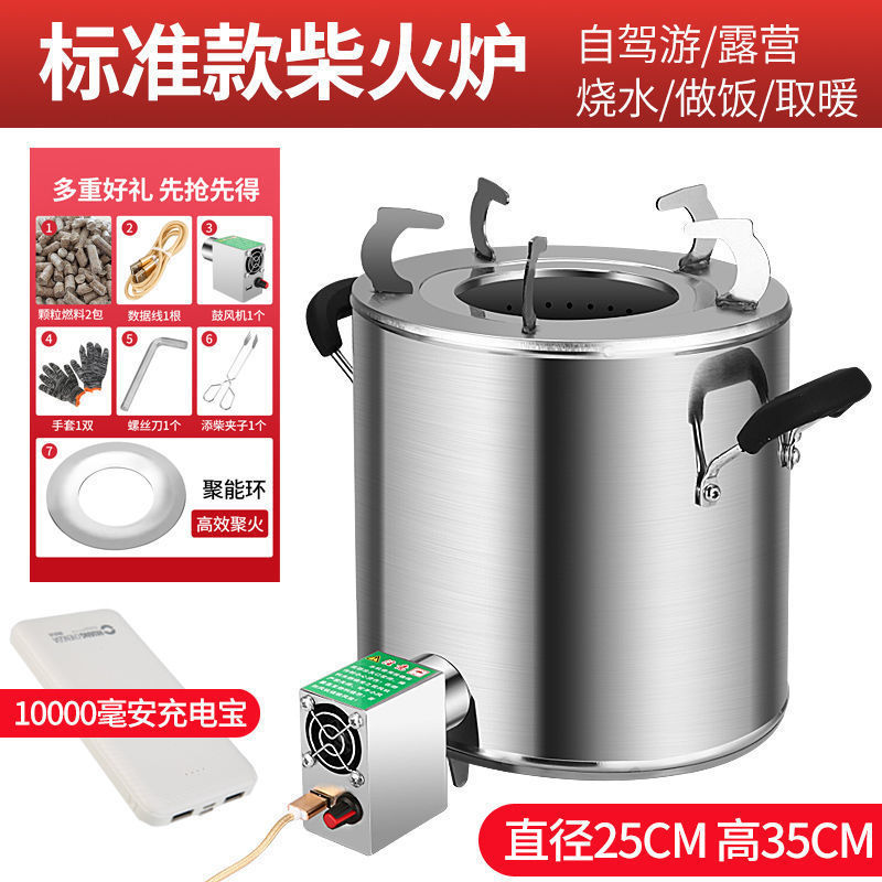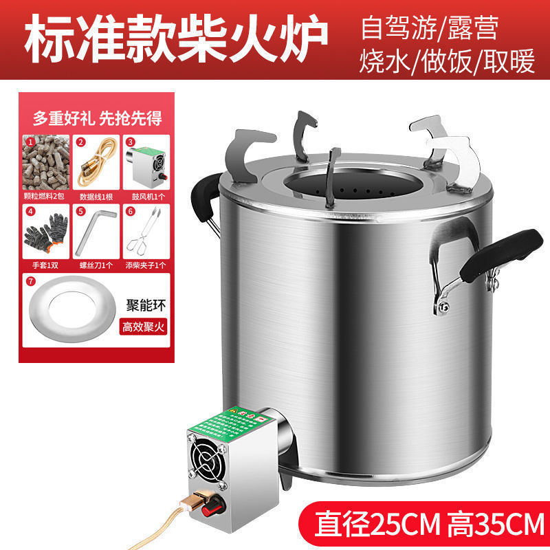 • [넓은 대형 스토브] + 팬 + 방풍 커버 + 전기 보물 - 수출 품질 스테인레스 스틸 무연 두꺼운 무연 장작 난로