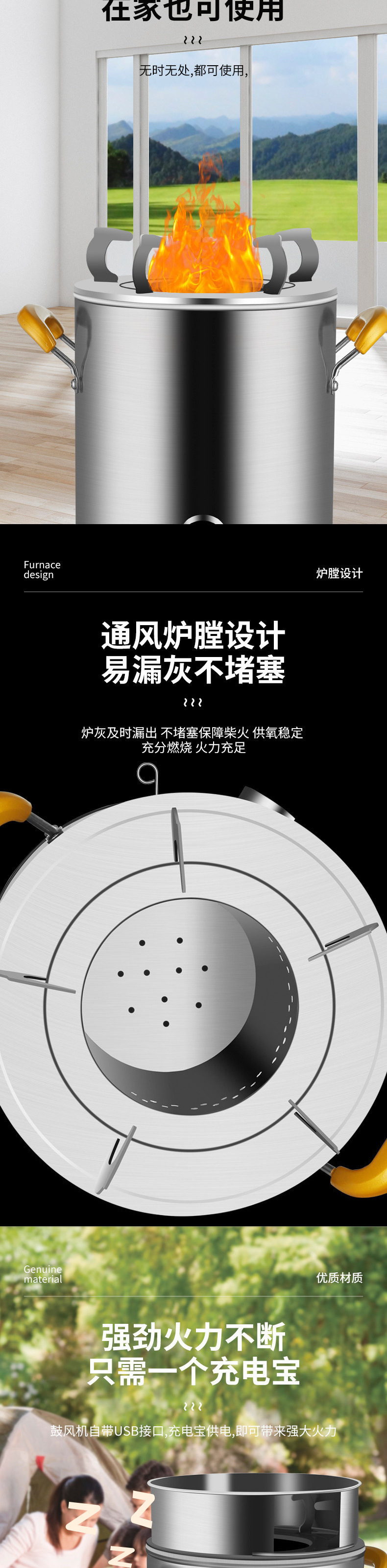 • 무연 스토브 + 팬 + 바람막이 유리 + 보조베터리 + 선물 가방 - 수출 품질 스테인레스 스틸 무연 두꺼운 무연 장작 난로