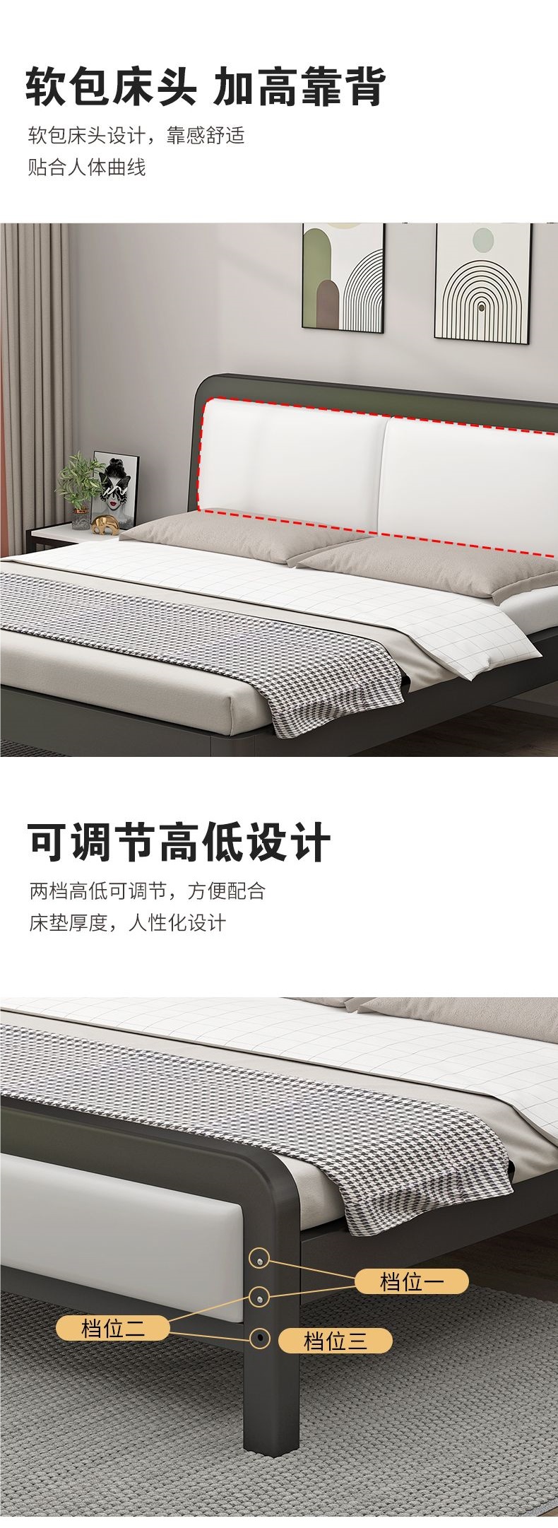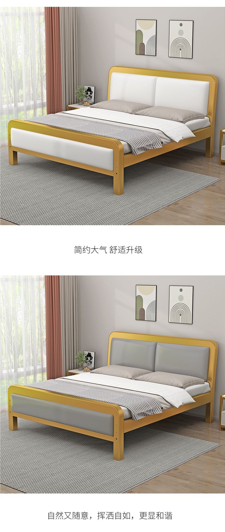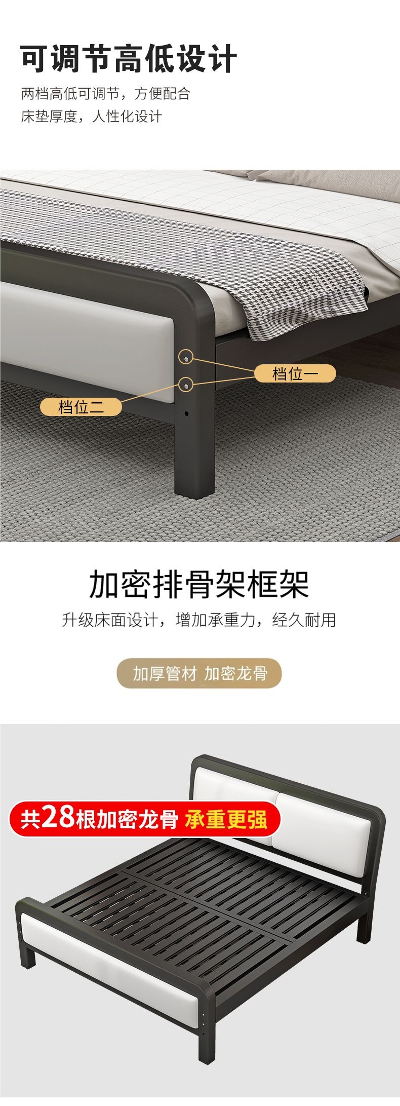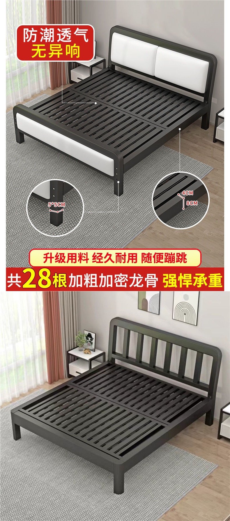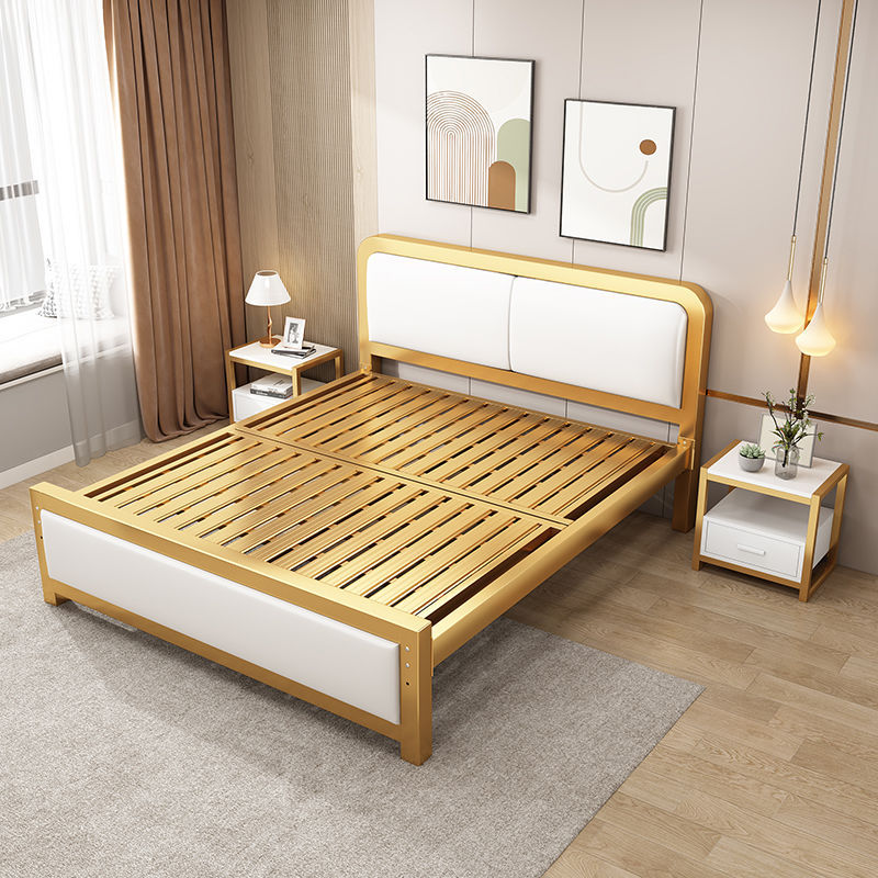 철제 침대 더블 침대 현대적인 간단한 싱글 철제 프레임 침대 임대실 스테인레스 스틸 철제 프레임 가정용 1.528m스토어 가기