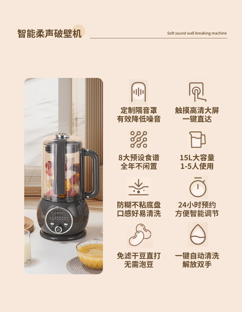 스마트 벽파괴기, 다기능 조리기, 라이트 사운드 1.5리터 스마트 두유기, 아마존 공장 직판스토어 가기